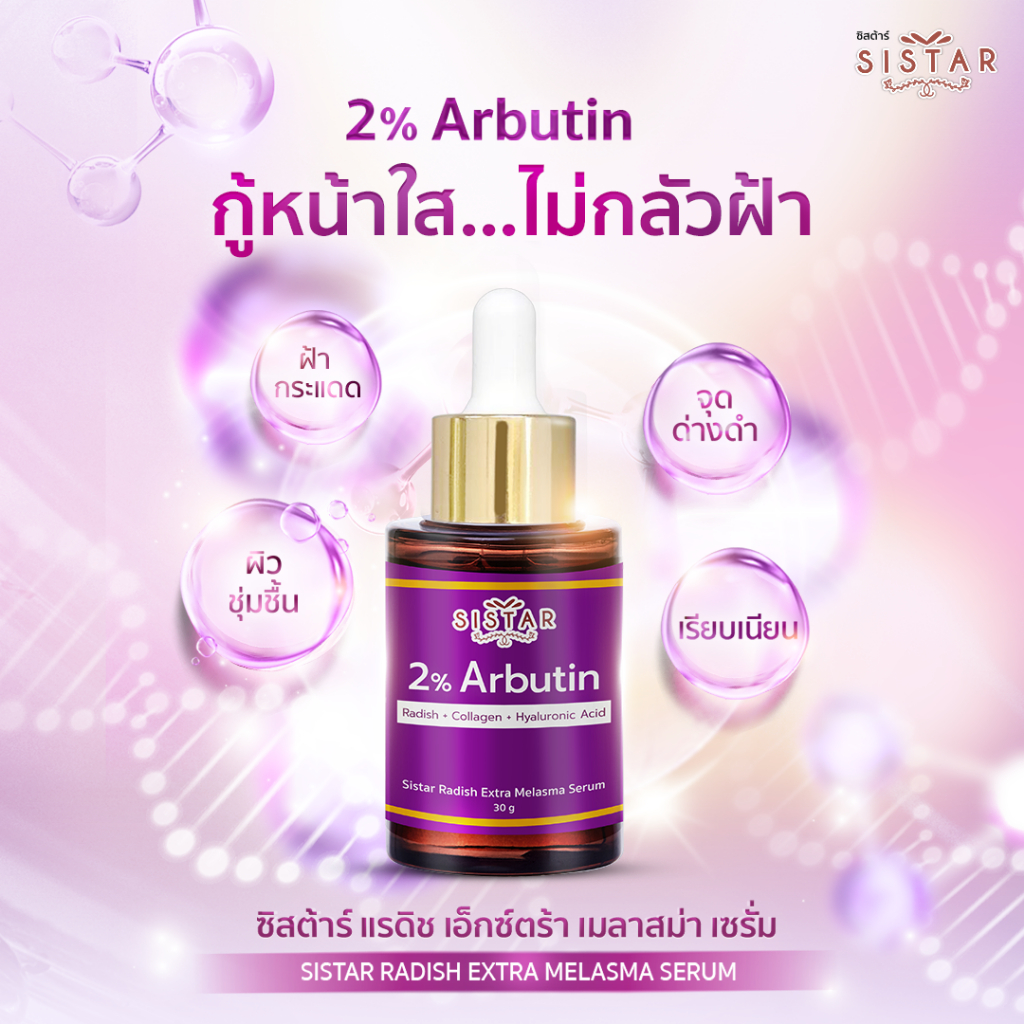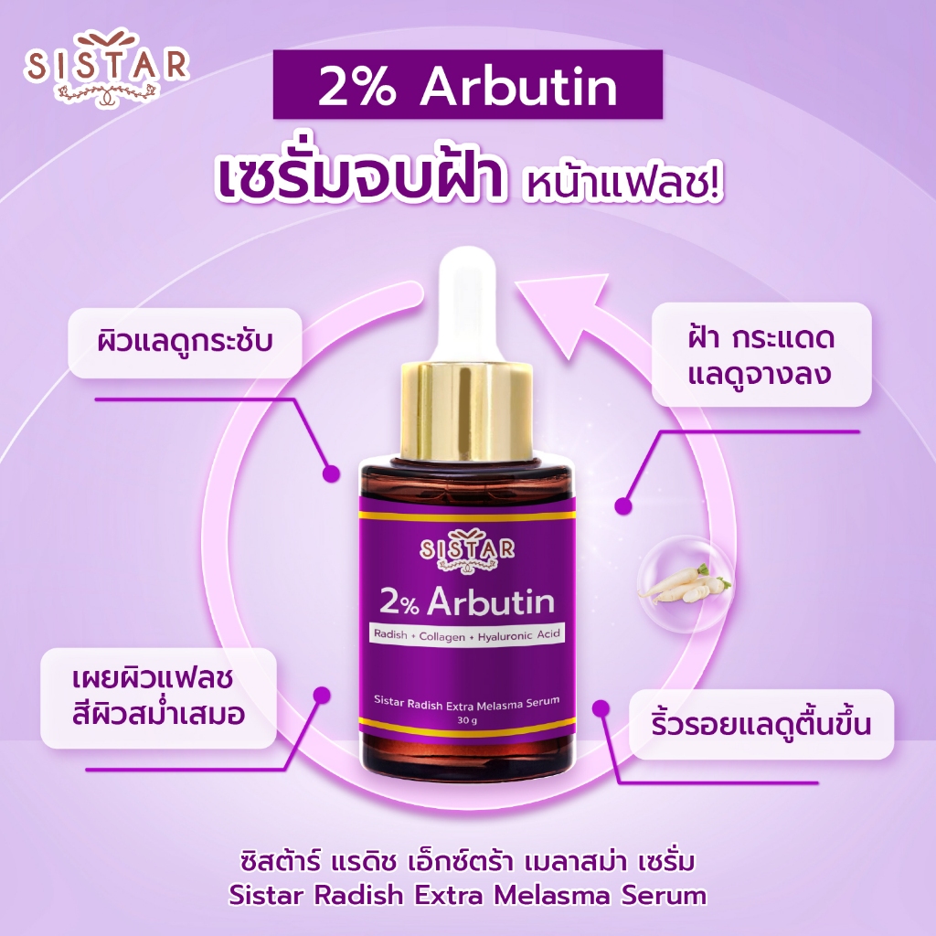 Sistar Official ซิสต้าร์ แรดิช เอ็กซ์ตร้า เมลาสม่า เซรั่ม 2% อาร์บูติน เซรั่มจบฝ้า หน้าแฟลช ขวด 30 กรัม
