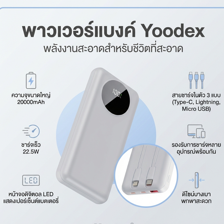 [China CCC]YOODEX Portable power bank 20000mAh 10000mAh Fast Charge รองรับชาร์ เร็ว Samsung/Xiaomi
