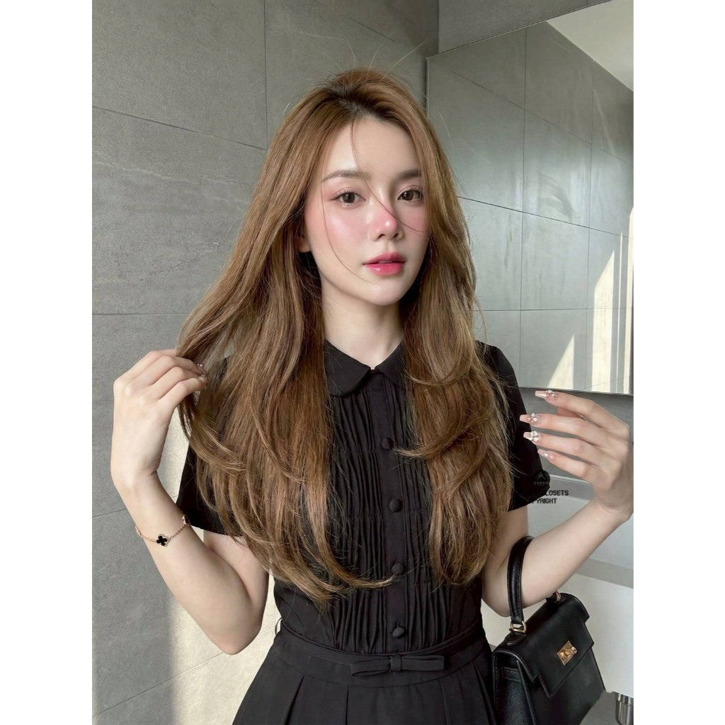 [CODE-D] มินิเดรสสีดำแขนสั้น คอบัว ดีเทลแต่งกระดุมเรียงยาว ด้านหน้าจับจีบ อกเอวเข้ารูป แต่งสายคาดเอว