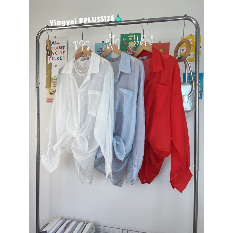 (YY) เสื้อเชิ้ตโอเวอร์ไซส์ ผ้าใยไผ่ บางๆ พริ้วๆ ใส่คลุมเก๋ๆ ใส่คลุมกันโป๊ได้ เสื้อผ้าสาวอวบอ้วน พลัสไซส์ ไซส์ใหญ่