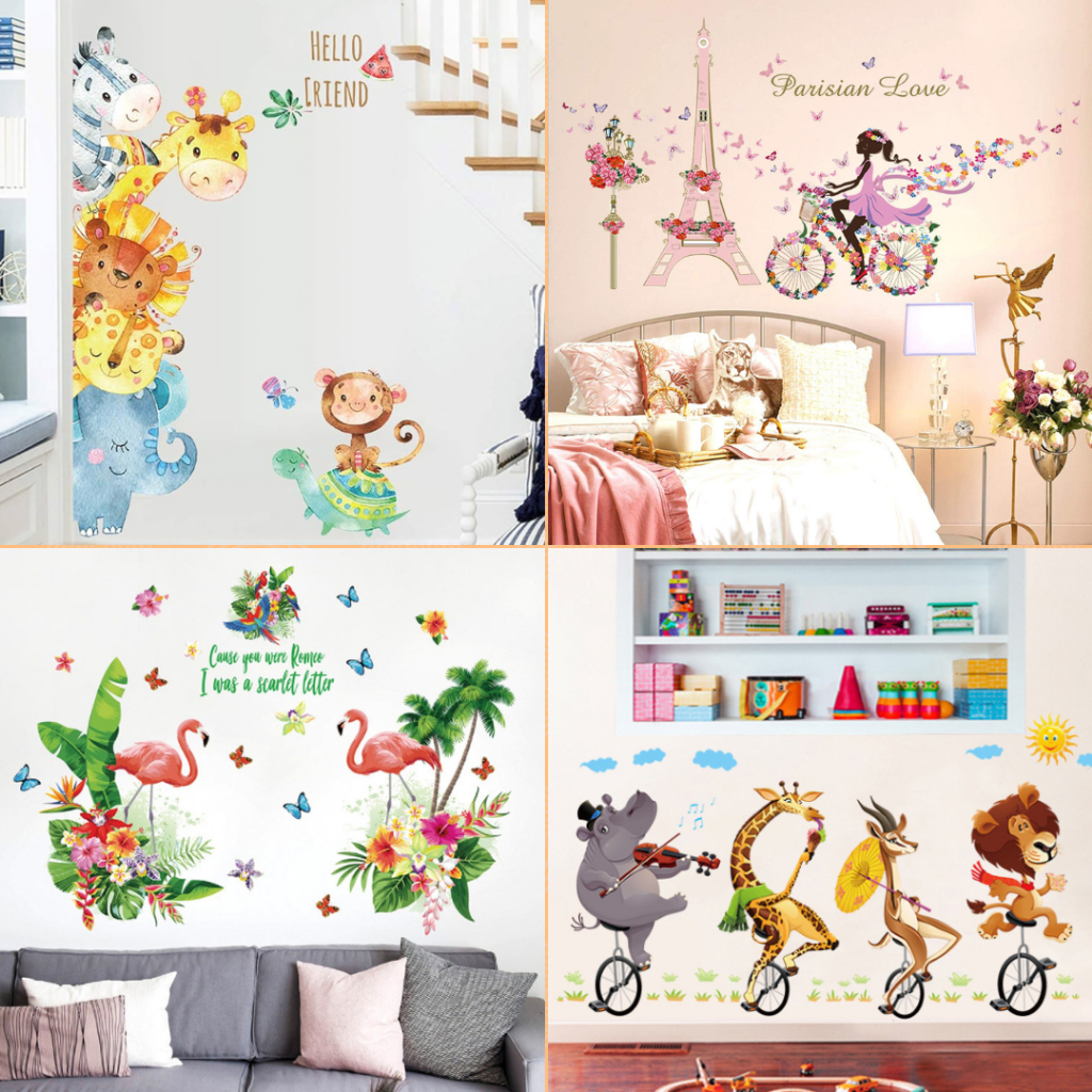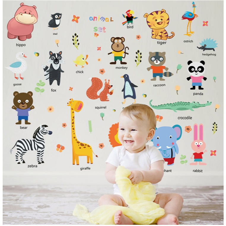 สติกเกอร์การ์ตูนติดผนัง ลายน่ารัก สติ๊กเกอร์สัตว์ stickerABC แต่งห้องเด็กผู้ชาย ตกแต่งเด็กผู้หญิง