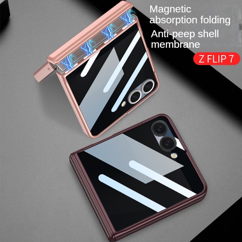 เคสความเป็นส่วนตัวสําหรับ Samsung Galaxy Z Flip7 เคส Flip7 ฝาครอบ Flip7 บานพับแม่เหล็ก พร้อมฟิล์มป้องกันกระจก