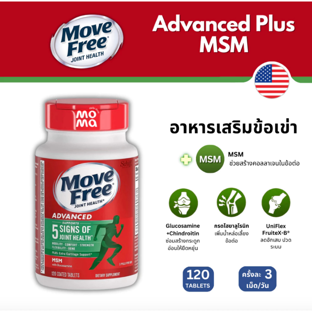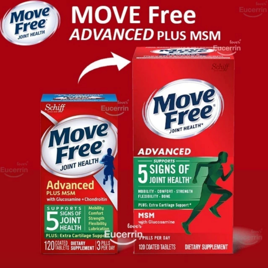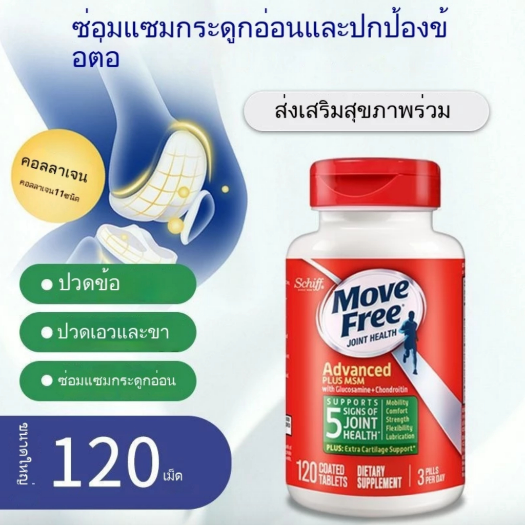 Schiff ,Move Free Advanced Glucosamine Chondroitin Plus MSM Joint Health 120Tablets กลูโคซา สูตรอาหารเสริมร่วม