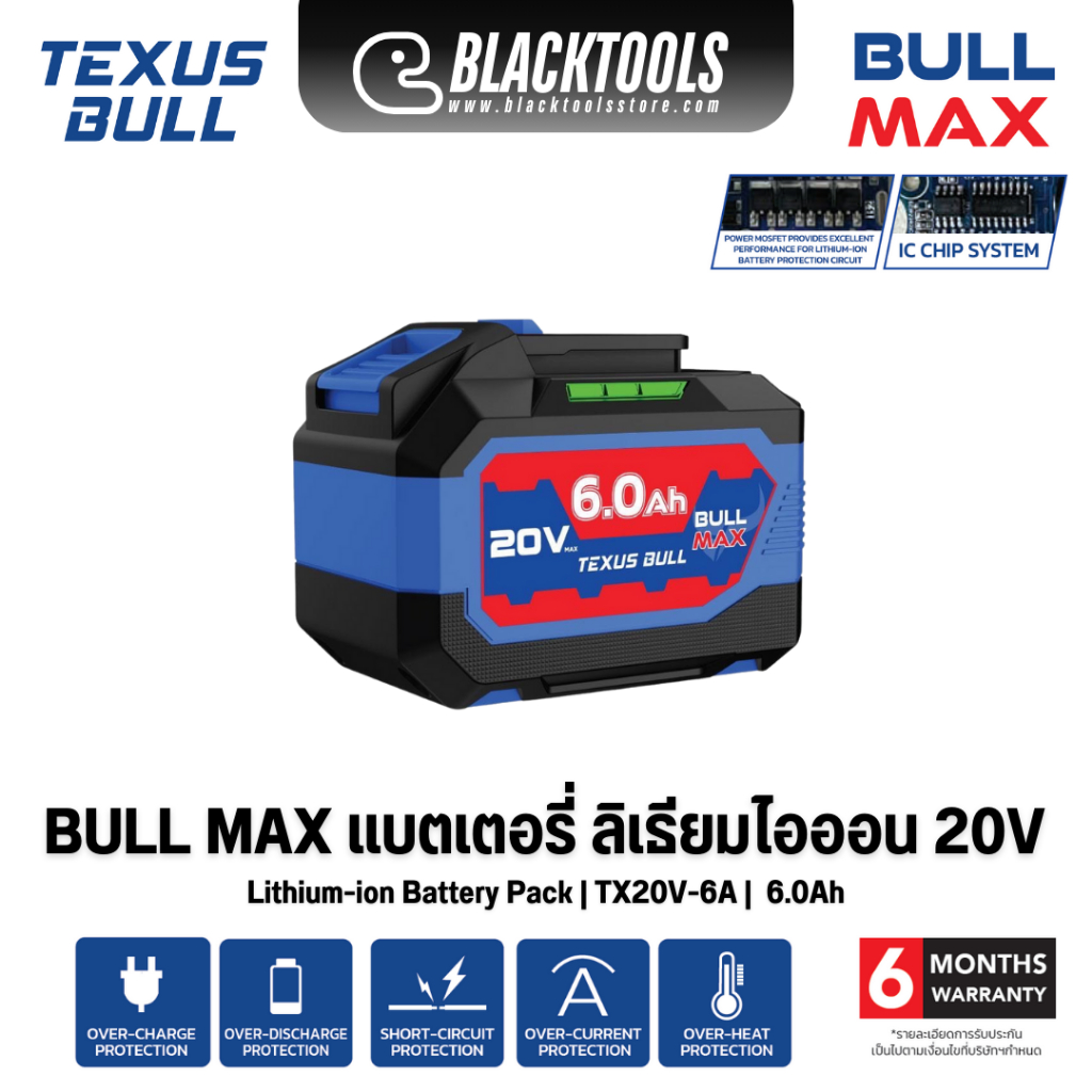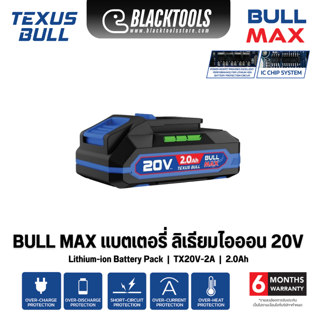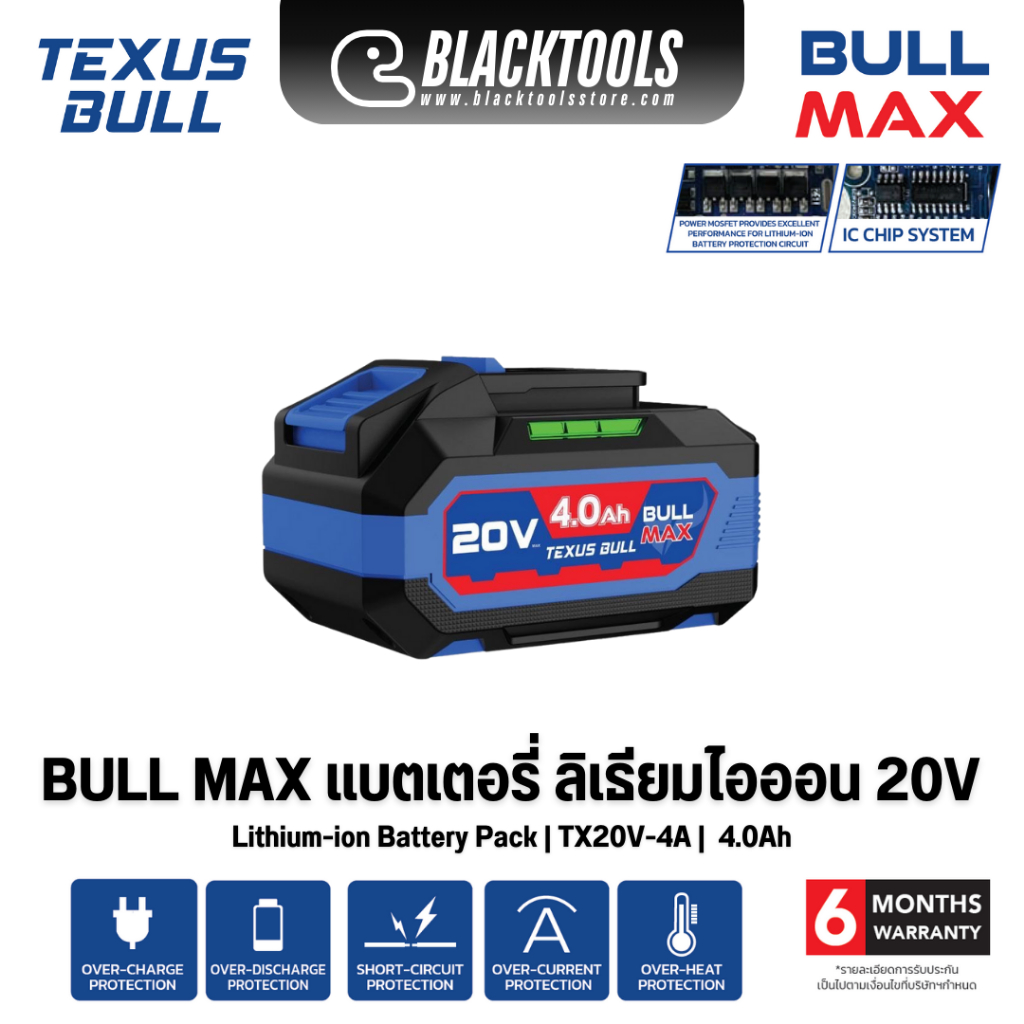 TEXUS BULL แบตเตอรี่ ลิเธียมไอออน 20V 6.0Ah 4.0Ah 2.0Ah BULLMAX TX20V BLACKTOOLS