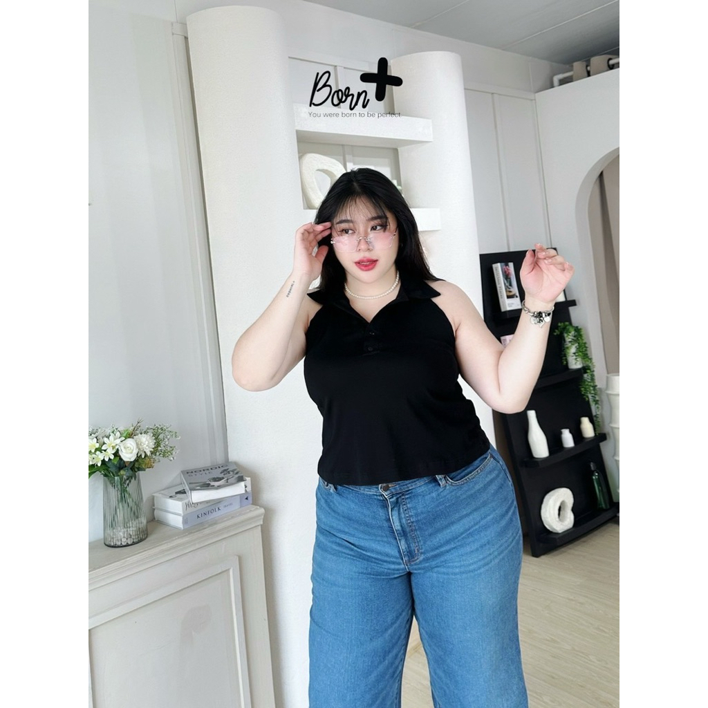 /BP/ เสื้อคอโปโลแขนกุด มีไซส์อก40-60 ทรงคล้องคอ กระดุมหน้า สม็อคหลัง ผ้านิ่มยืด ใส่สบาย #เสื้อไซส์ใหญ่ พลัสไซส์