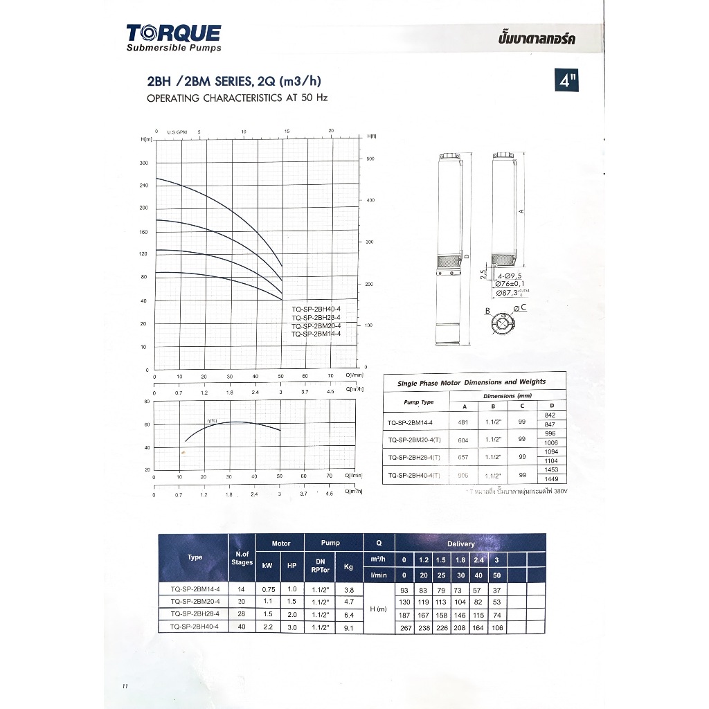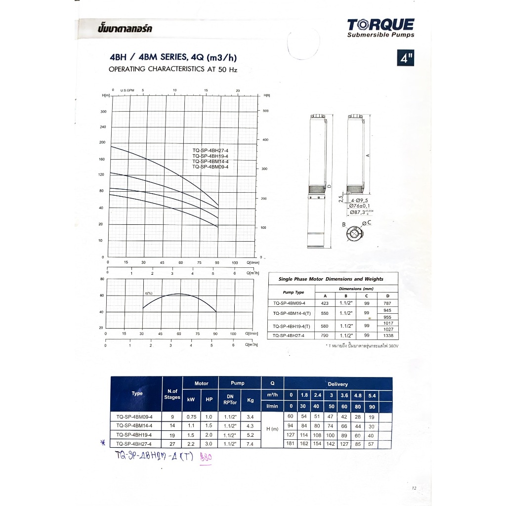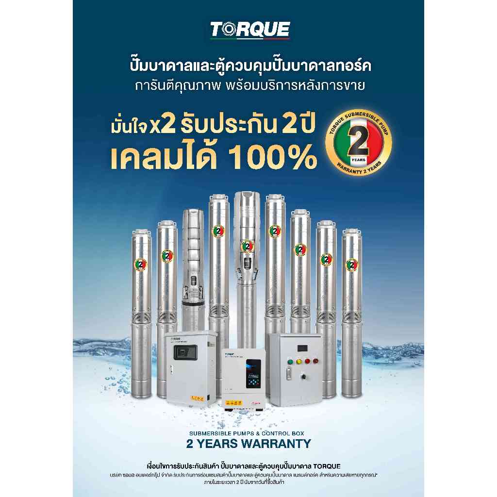 TORQUE ปั๊มบาดาล 3 แรง 220V บ่อ 4 นิ้ว (มีตัวเลือก) ซับเมิร์ส บาดาล อิตาลี ปั๊มน้ำ อิตาลี