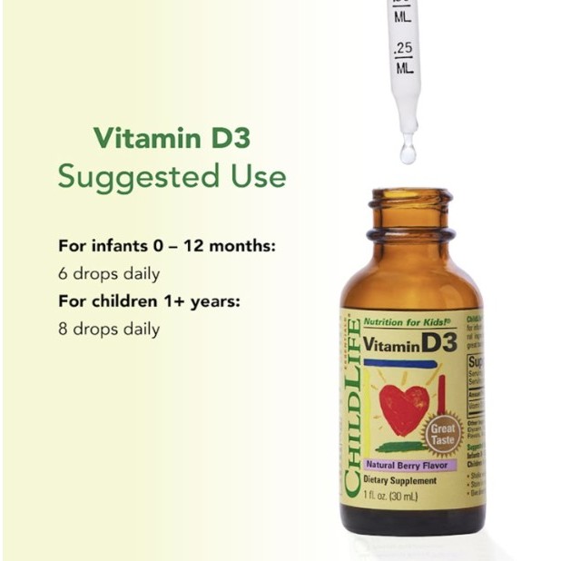 ChildLife Vitamin D3 เด็ก วิตามินแดด หยดง่าย รสหวานธรรมชาติ เสริมกระดูก ภูมิคุ้มกัน ของแท้ USA