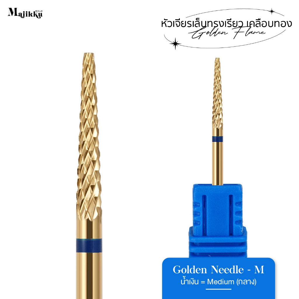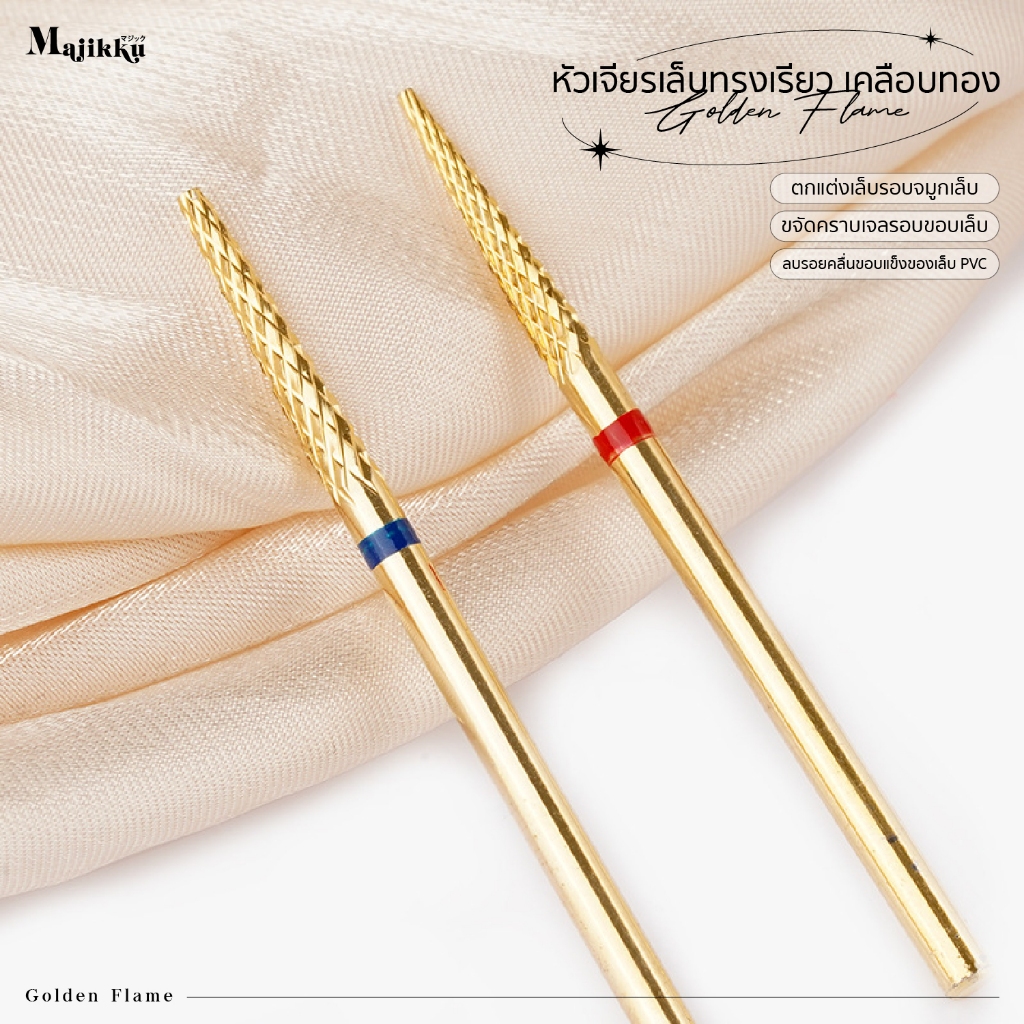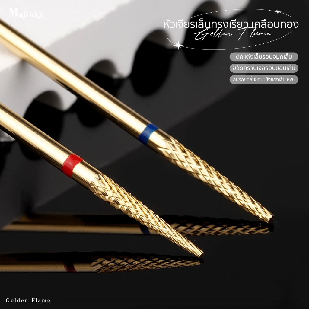 Majikku หัวเจียร Golden Flame คาร์ไบด์คุณภาพ เจียรผิวรอบขอบเล็บ และเก็บรายละเอียดเล็บ PVC