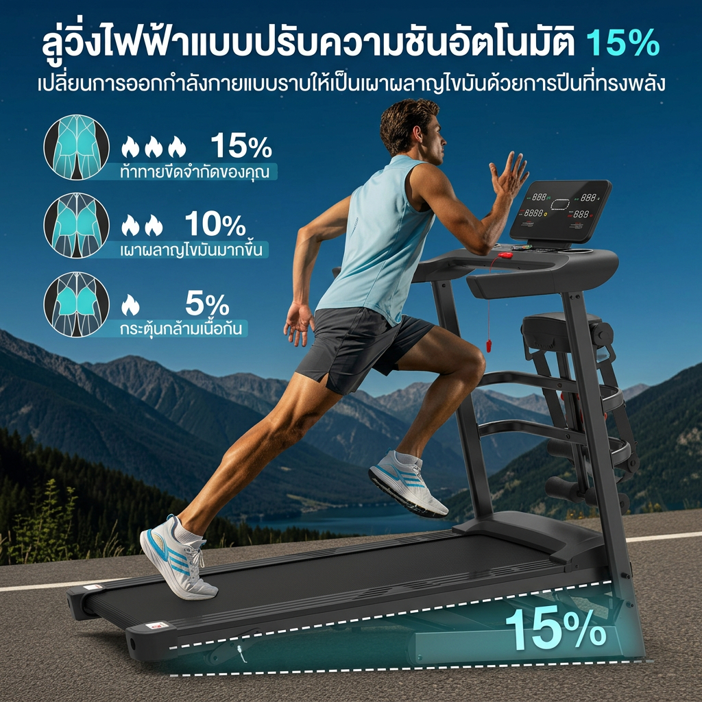 ลูวิ่งไฟฟ้า ลู่วิ่ง ไฟฟ้า A7001 treadmill 5.0 แรงม้า ลู่วิ่งพับได้ ปรับระดับความเร็ว 18 ระดับ ปรับความชันได้ 3 ระดับ
