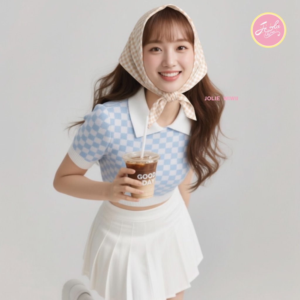 Jolie Wiwii ผ้าโพกหัวลายสก๊อต ผ้าโพกผม Checkered Head Scarf