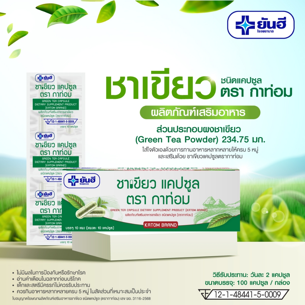 Yanhee Green Tea Capsule ชาเขียว แคปซูล ตรากาท่อม 100 แคปซูล