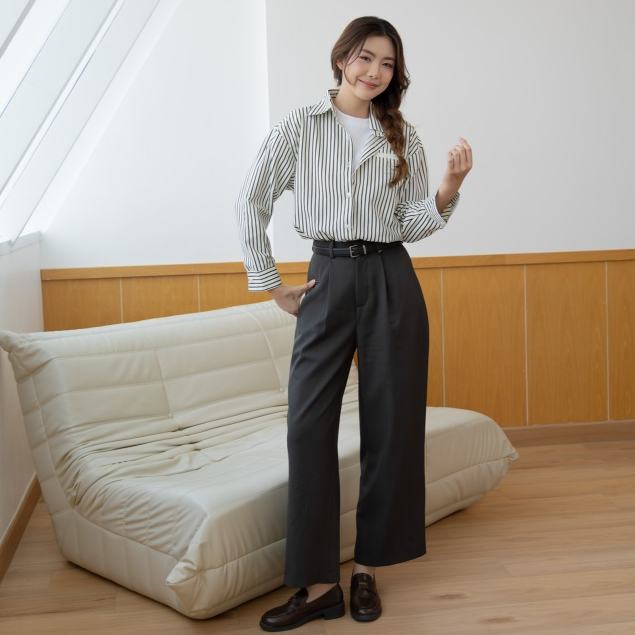 avo กางเกงทรงกระบอกใหญ่แต่งจีบหน้า terda pants