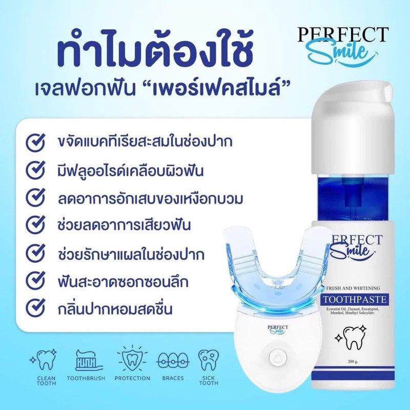 ชุดฟอกฟันขาว Perfect Smile [📍ลดในไลฟ์𝟱𝟬%] เจลฟอกฟัน ไม่เสียว ลิ้นไม่ชา ลดฟันเหลือง ลดคราบหินปูน