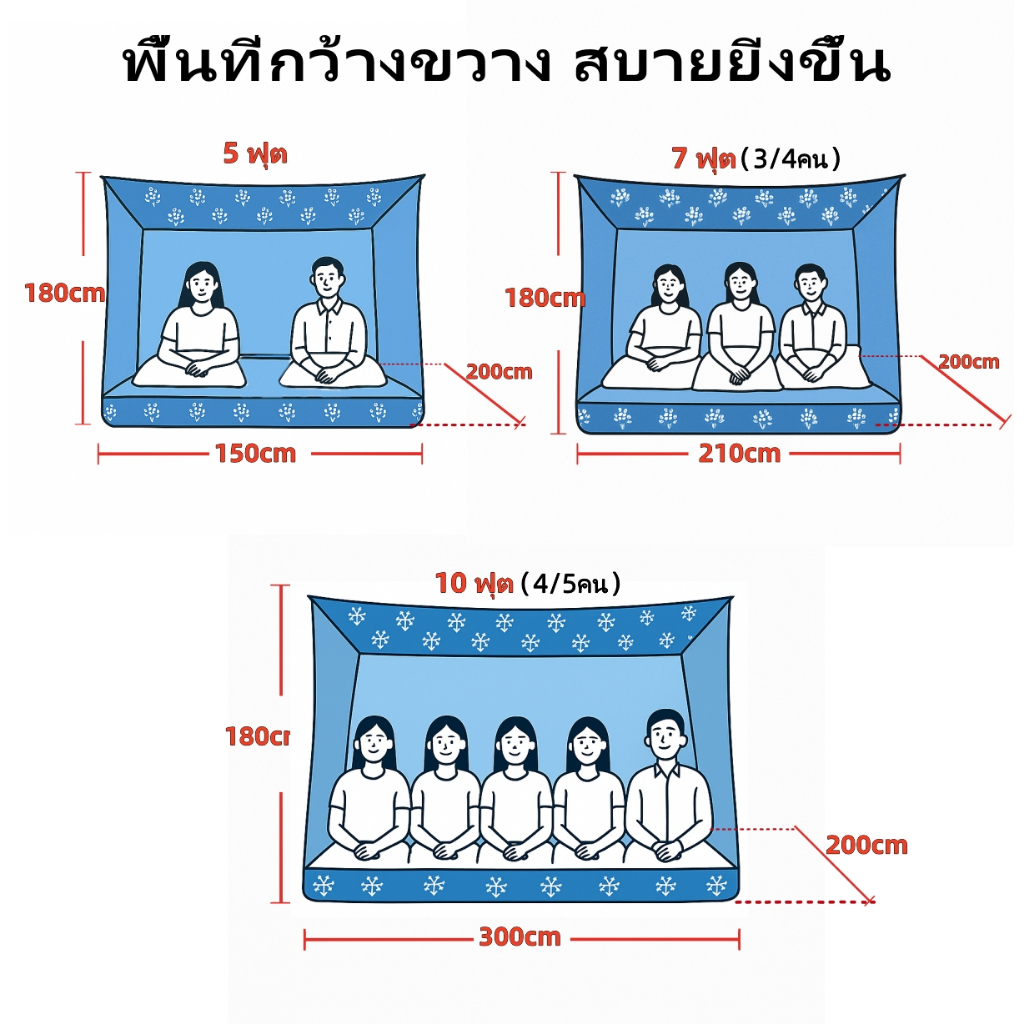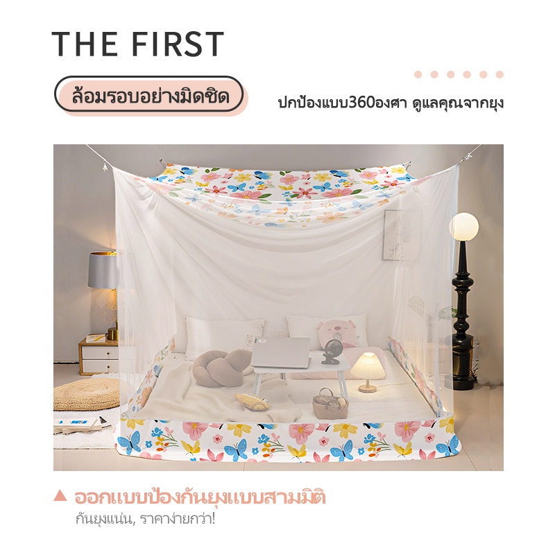 YYT มุ้งกันยุง มุ้ง 5ฟุต 7ฟุต 10ฟุต นอน2-5คน กันฝุ่นด้านบน กันยุงด้านข้าง สีพื้น ขนาดประหยัดพื้นที่