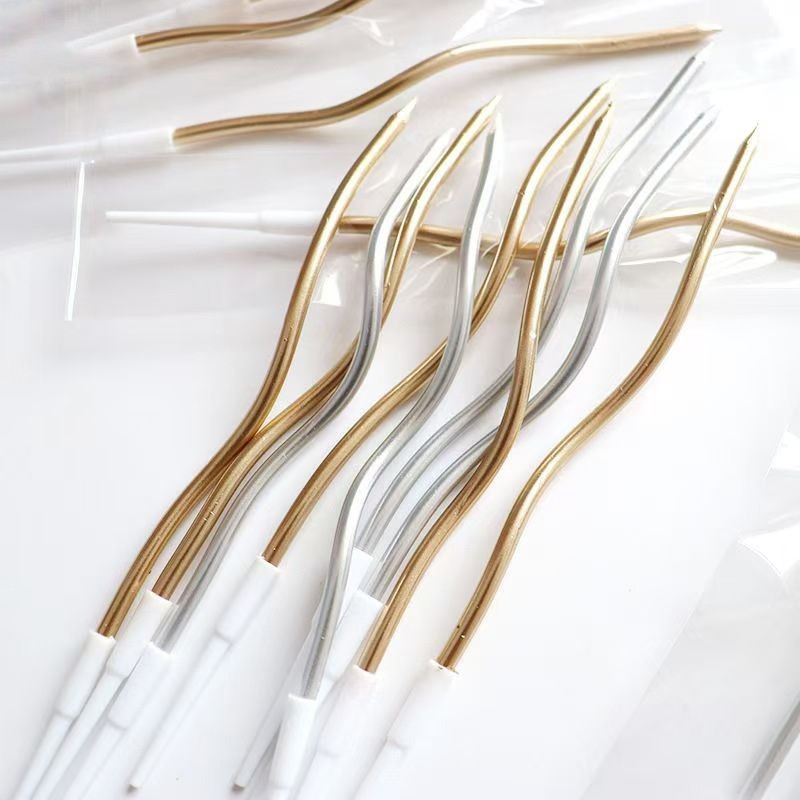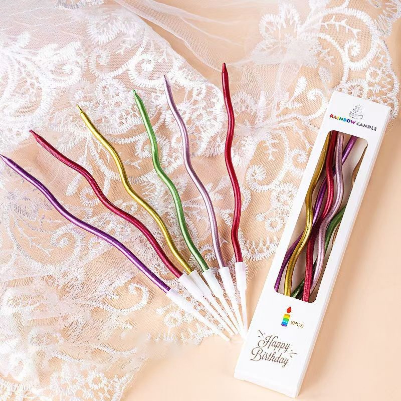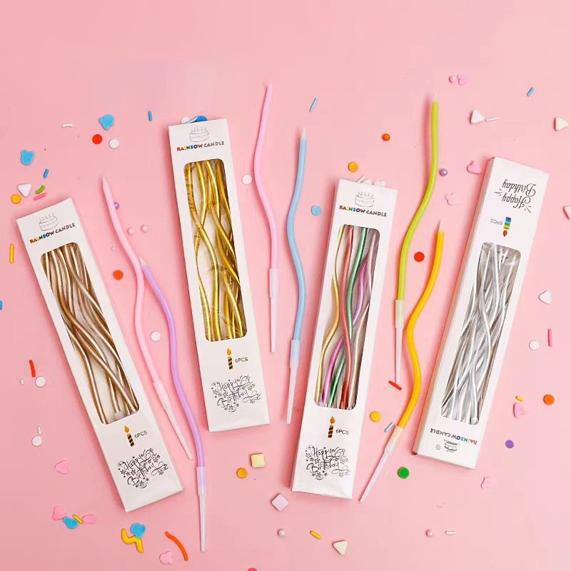 เทียนวันเกิด เทียนปักเค้กแบบเกลียวโค้ง กล่องละ 6ชิ้น พร้อมส่งในไทย Happy birthday