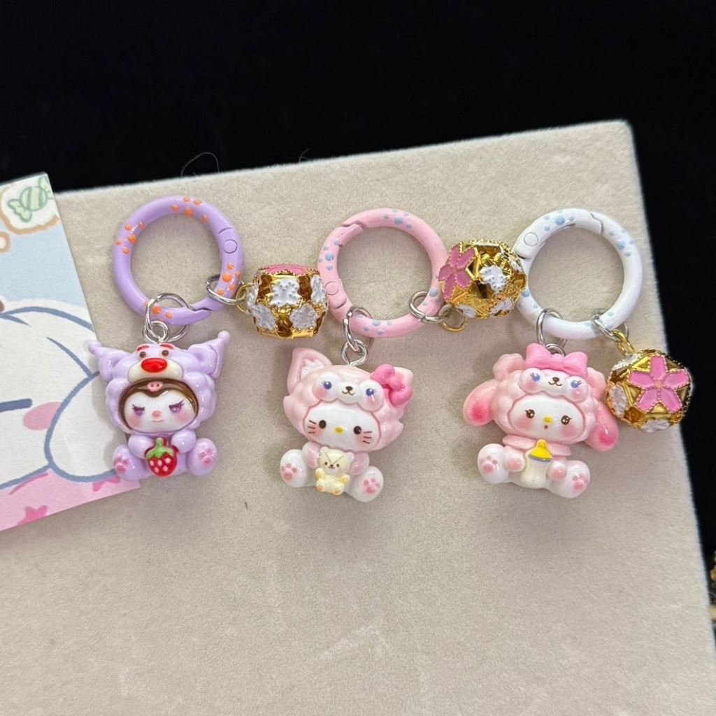 พวงกุญแจการ์ตูน Sanrio กระดิ่งกลอง ที่ห้อยกระเป๋านักเรียนลายซานริโอ พร้อมส่งจากไทย