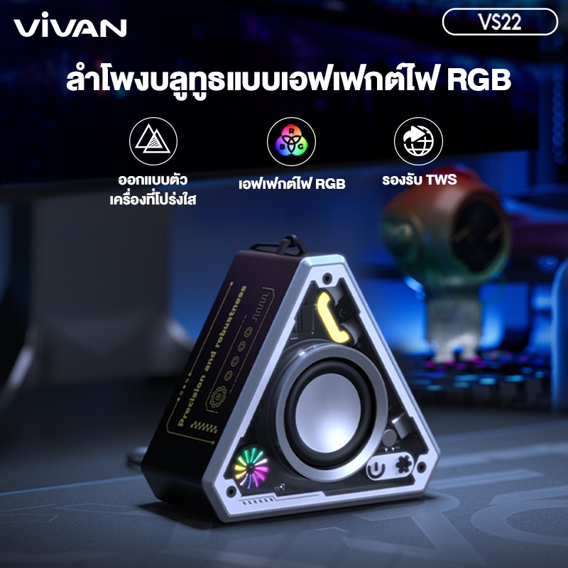 VIVAN รุ่น VS22 ลำโพง Bluetooth Speaker รองรับ TWS มีไฟ RGB ลไโพงสเตอริโอไร้สาย เชื่อมต่อ2เครื่องในเวลาเดียวกัน เบสแน่น