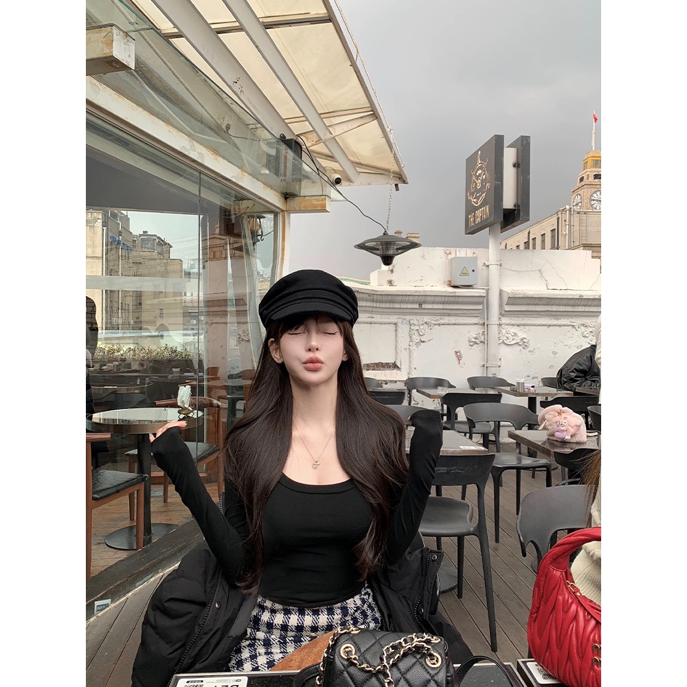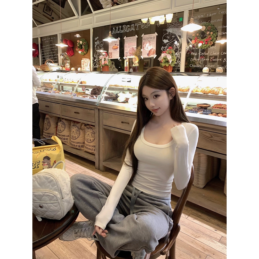 Moses Queen/Queen of Mercy เสื้อยืดคอยูแขนยาวสไตล์เกาหลี เสื้อท็อปทรงสลิมฟิตสีพื้นสำหรับผู้หญิง