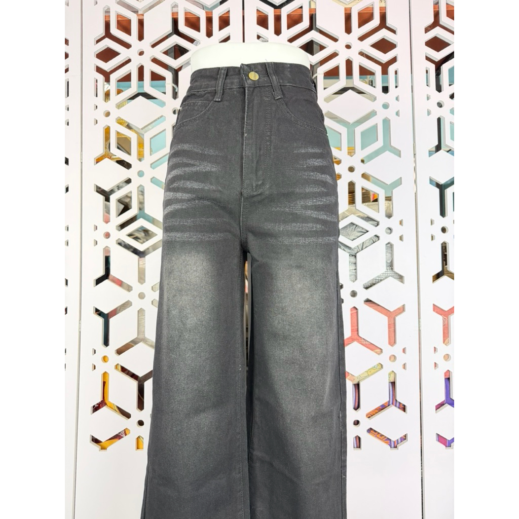 กางเกงยีนส์ทรงกระบอกตรง Niyom jeans รุ่น WS201-2 กางเกงยีนส์ กระบอกตรง สีดำ แต่งเฟด ผ้าไม่ยืด