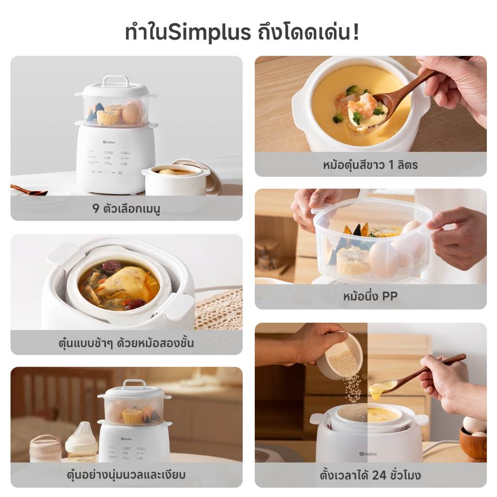 Simplus X INSSA หม้อตุ๋นไฟฟ้า 1L ตุ๋นผ่านน้ำ เมนูอัจฉริยะ ตั้งเวลาได้ ทำซุป โจ๊ก ไข่ตุ๋น อาหารเด็ก DDGU002