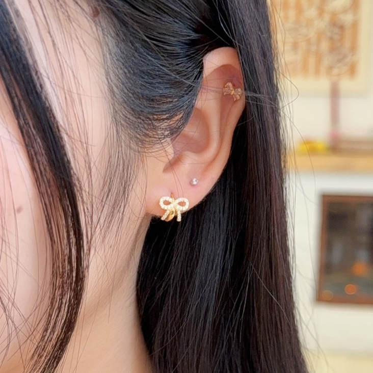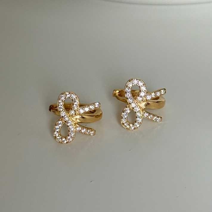 Suwann.na [ราคาต่อคู่] ต่างหูห่วง ต่างหูเงินแท้ ห่วงโบว์เพชร