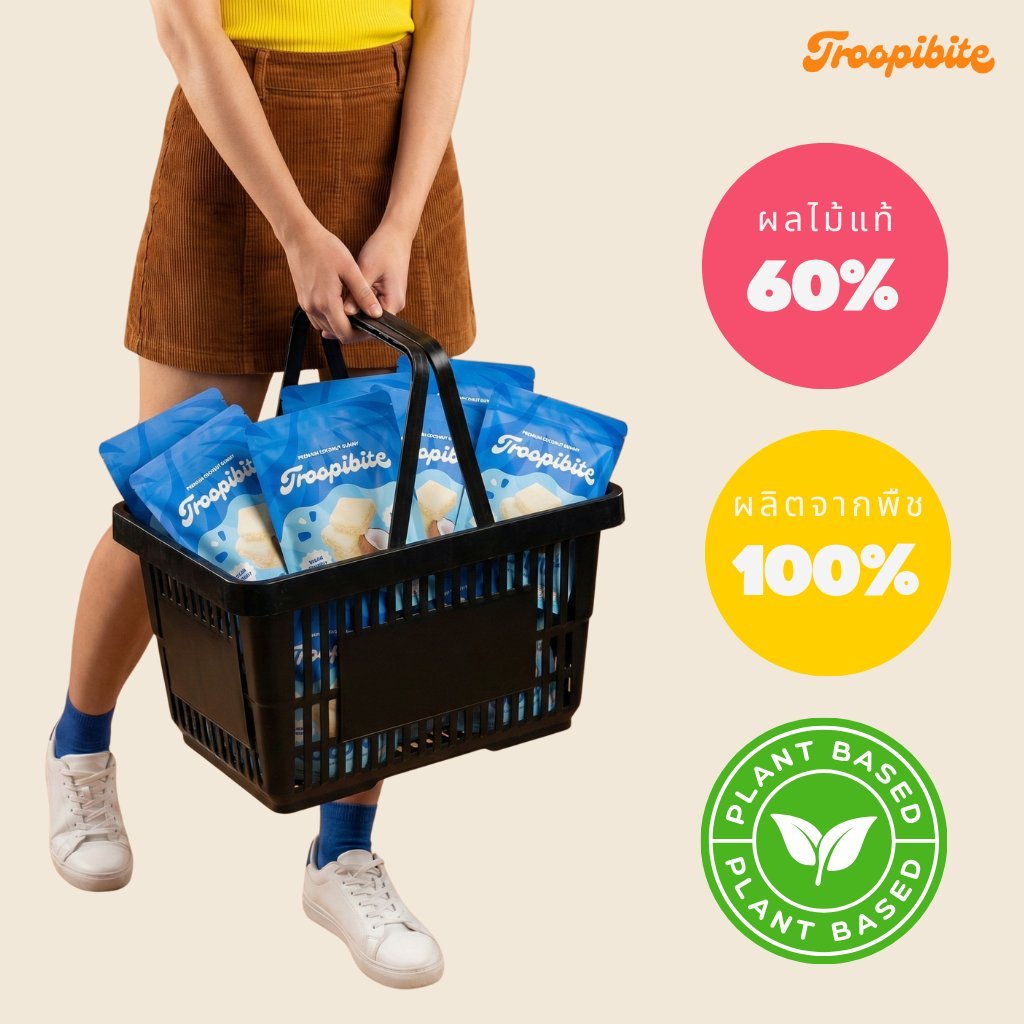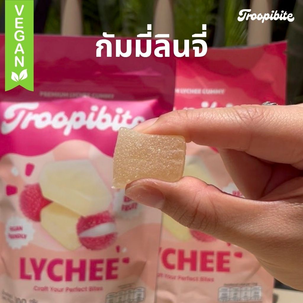 (3 แถม 1) ซอง Troopibite เยลลี่ผลไม้พรีเมียม Vegan ผลไม้แท้ 60% รสลิ้นจี่ (400 กรัม)