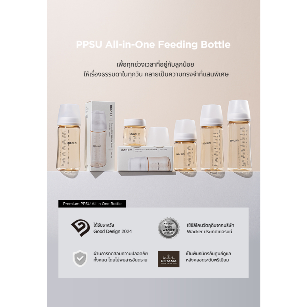 MOYUUM Gen3 ขวดนมเด็ก Premium PPSU โมยูม ALL IN ONE ขนาด 170ML (ลาย Basic) พร้อมจุก Stage1 สำหรับ 0-3 เดือน