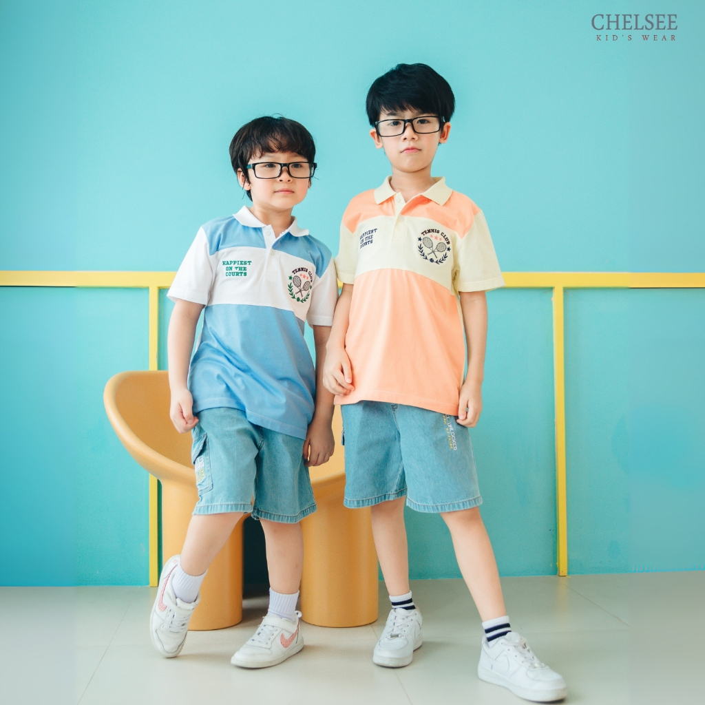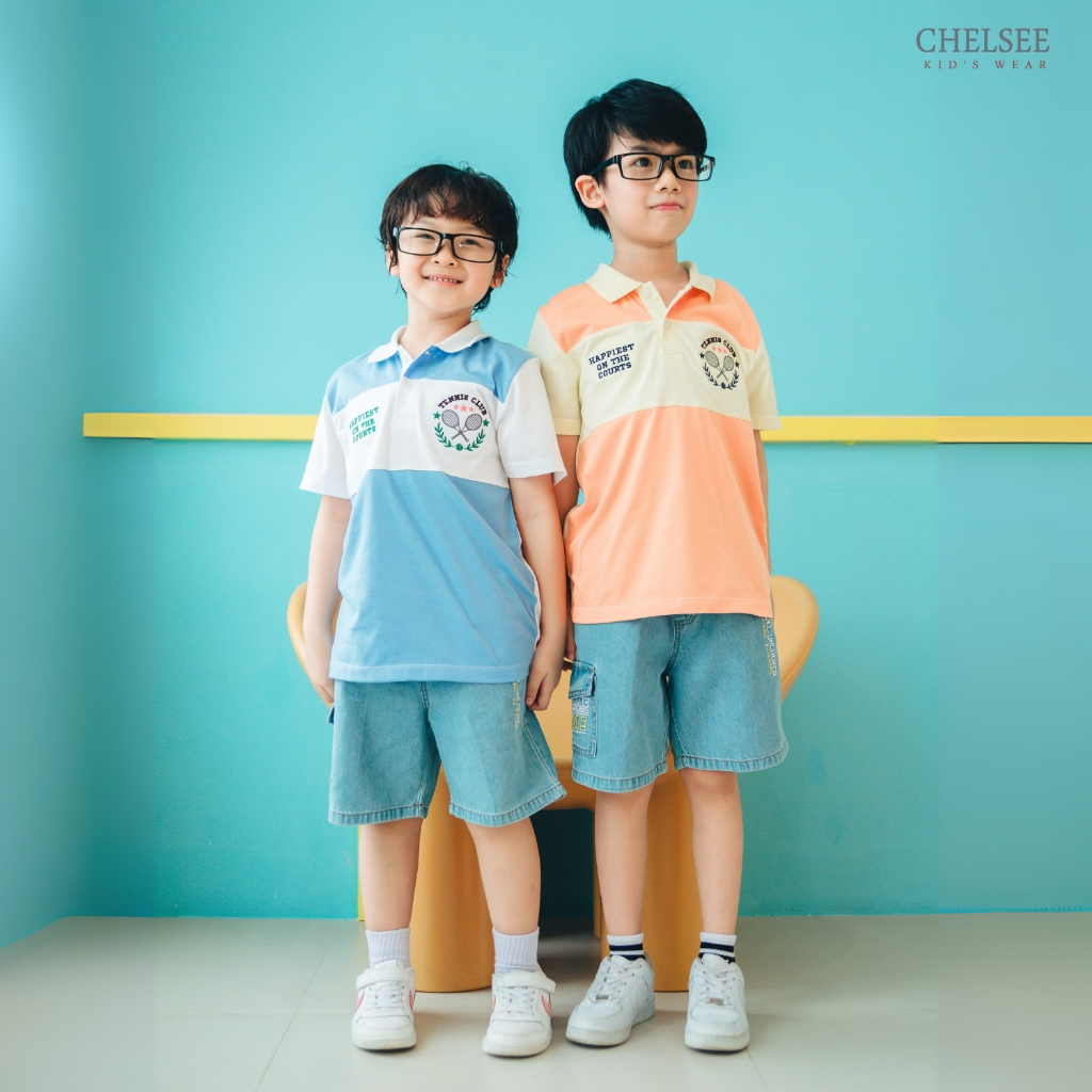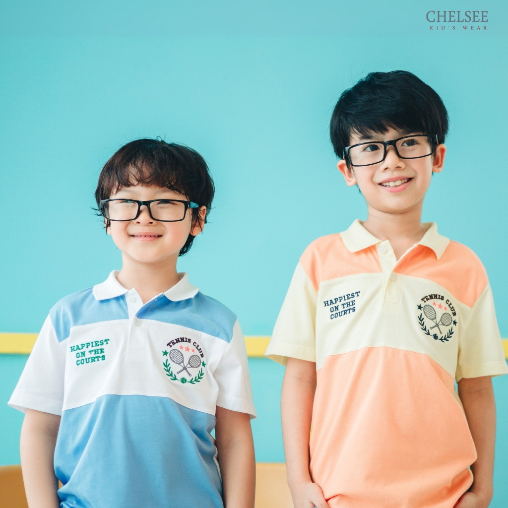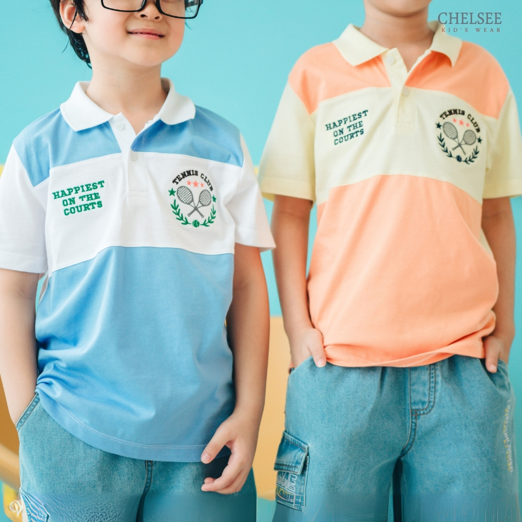 Chelsee เสื้อโปโล แขนสั้น ปักลาย ตัดต่อสี อายุ 1.5-10 ปี ผ้า 100%Cotton เด็กผู้ชาย เสื้อผ้าเด็กโต รุ่น 128180