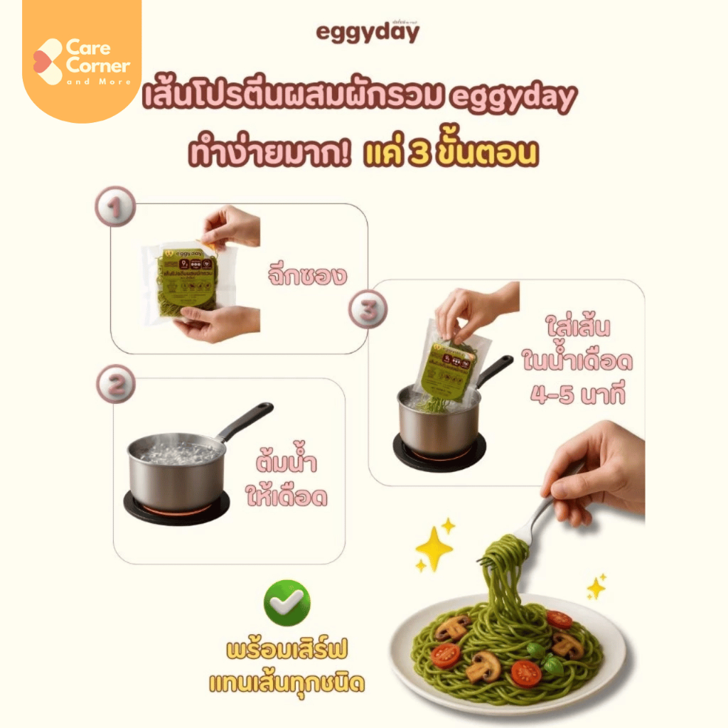 Eggyday เส้นโปรตีนสูง ผสมผักรวม เส้นผักออร์แกนิก Organic Vegetable Protein Noodle Vegan โปรตีนสูง วีแกน เจ มังสวิรัติ