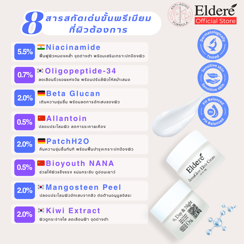 Eldere DermaGlow Elixir Cream มอยซ์เจอร์ไรเซอร์เข้มข้น ผิวเนียนใส่ ฉ่ำวาว สุขภาพดี ผิวอักเสบจากสิว