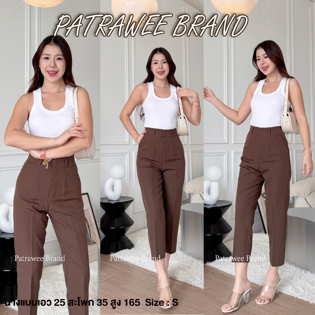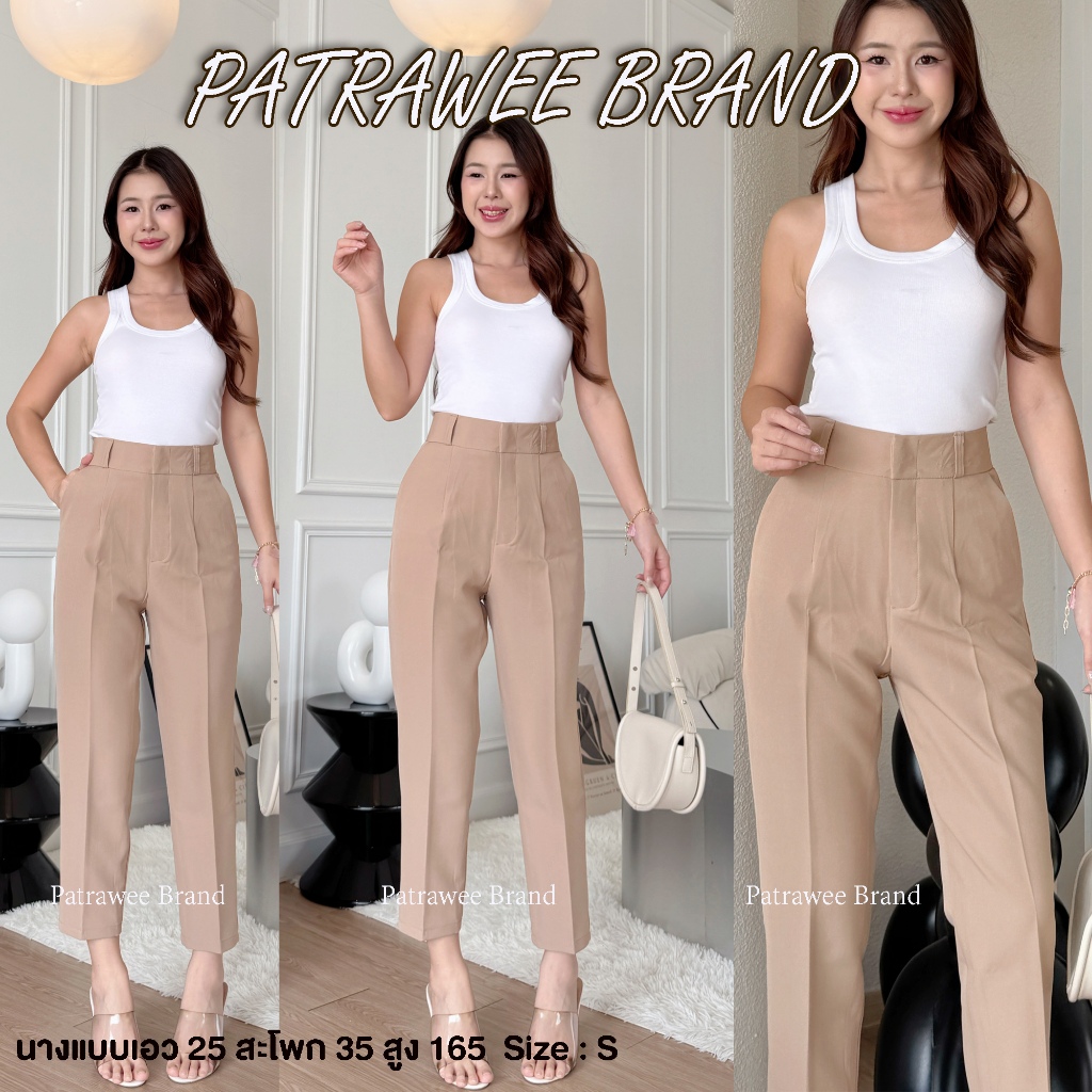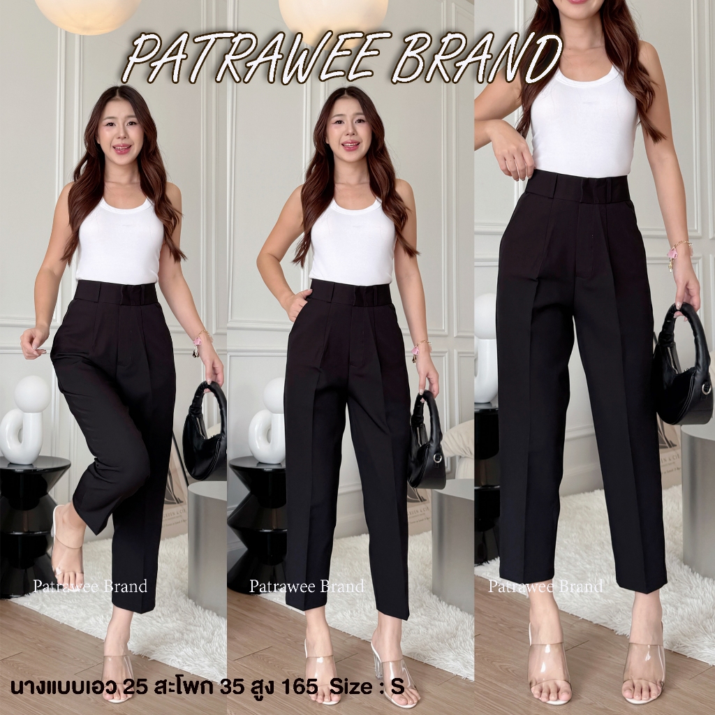 P45 กางเกงขา 8 ส่วน กางเกงทำงานเอวสูง ทรงบอย ซิปหน้า ไซส์ S-XL ผ้าเนื้อดีสีสวย