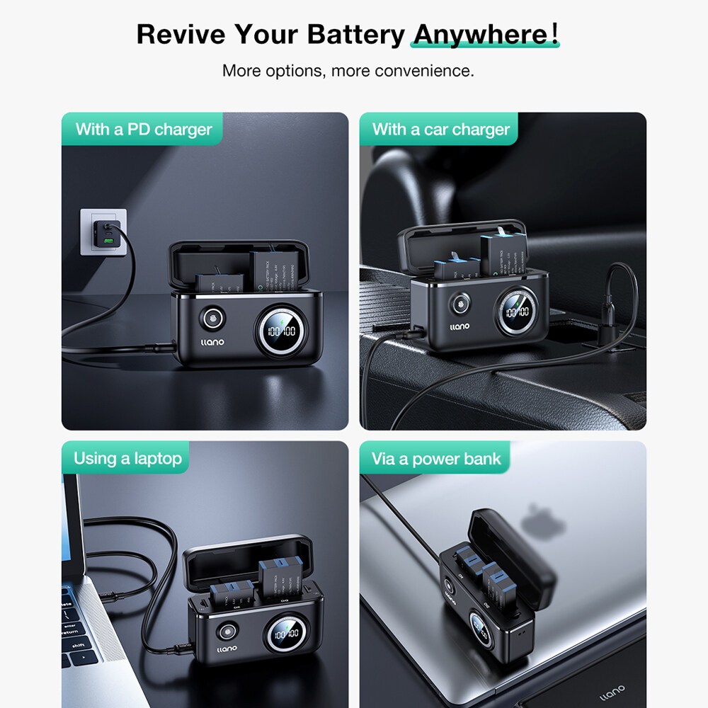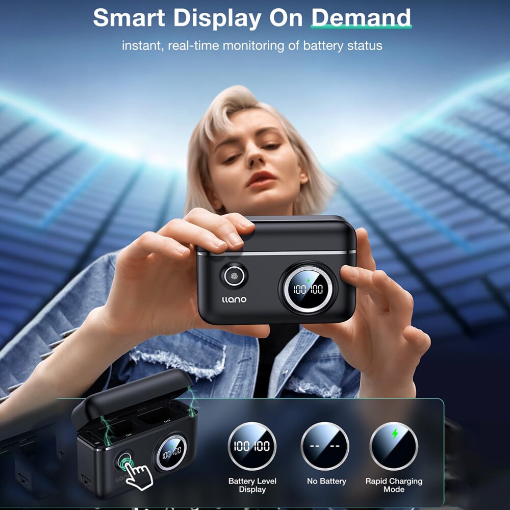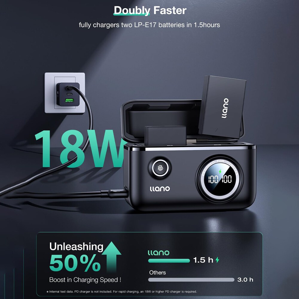 LLANO แบตเตอรี่กล้อง Dual Slot Digital Display พร้อมฟังก์ชั่นเก็บการ์ด SD สําหรับ NP-W126s, FZ-100, NP-FW50, LP-E17 LP-E6NH, NP-W235 NP-W126S, HEROX204, DJI