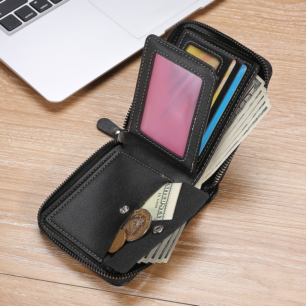 กระเป๋าสตางค์ ใบสั้น แต่งซิป อเนกประสงค์ เหมาะกับของขวัญ สไตล์นักธุรกิจ สําหรับผู้ชาย จํานวน 1 ชิ้น
