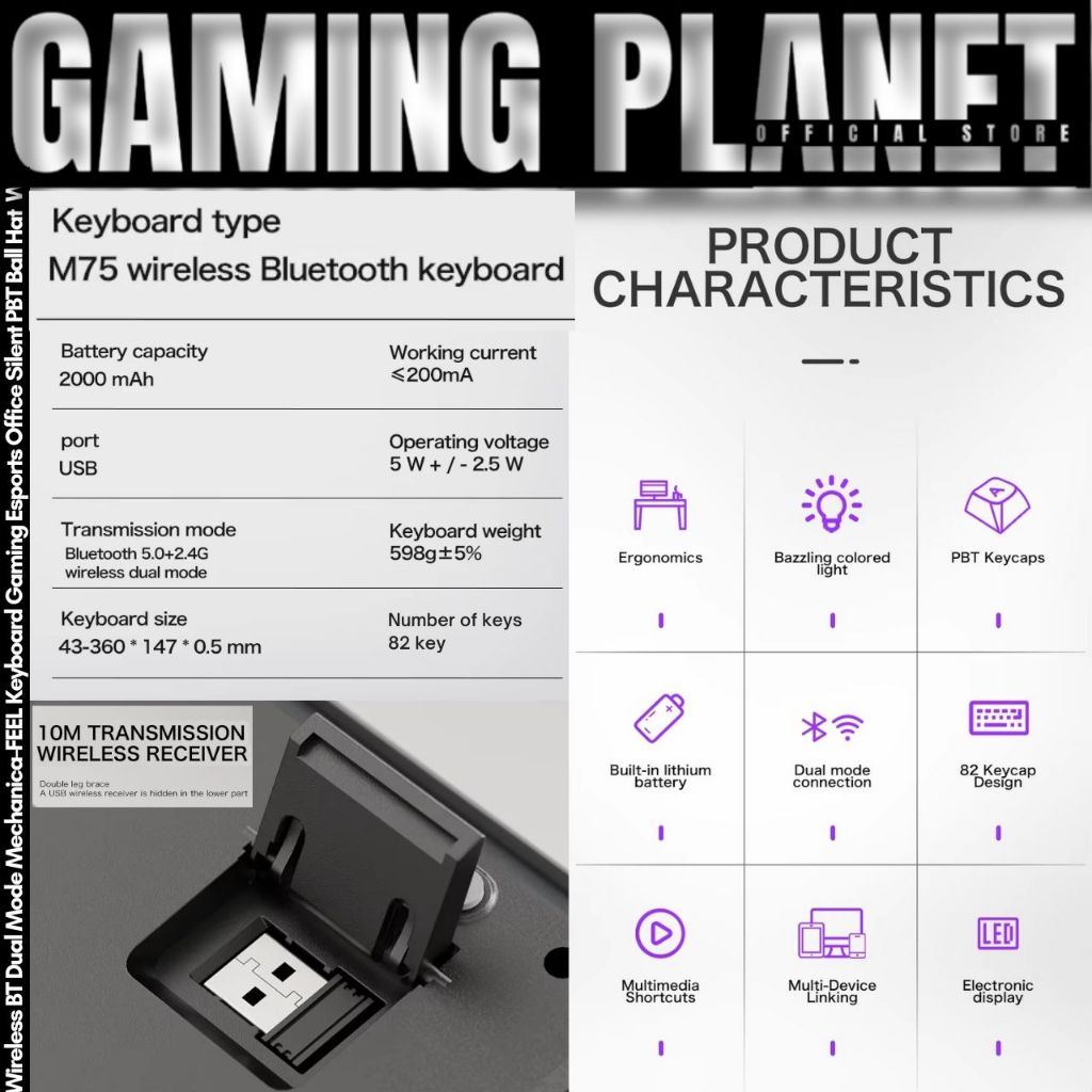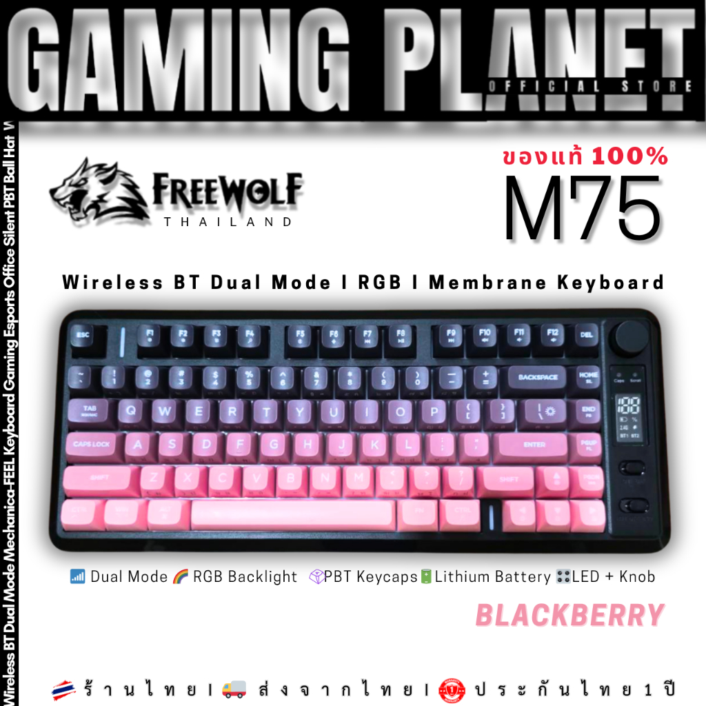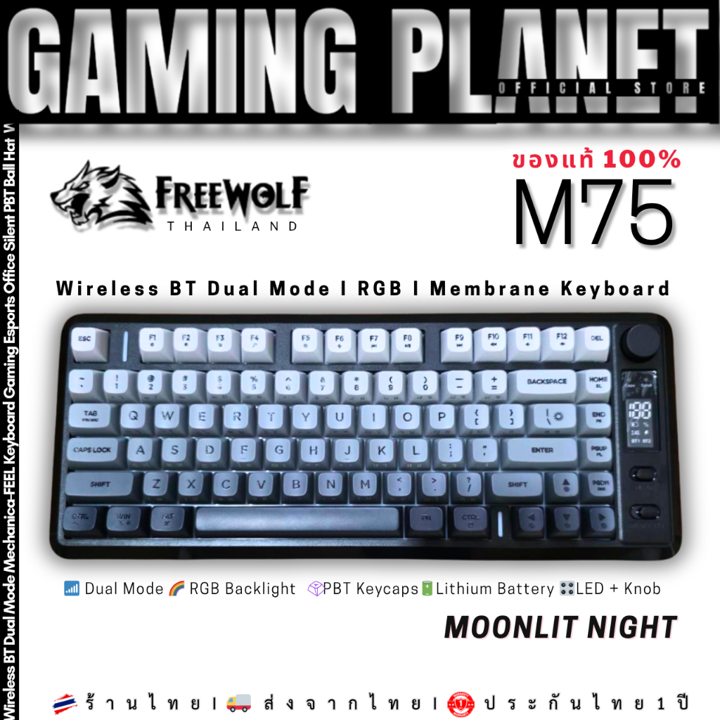 คีย์บอร์ดเกมมิ่ง Freewolf M75 | Mechanical Wireless Dual Mode 75% | RGB | Knob | จอ LED คีย์ไทย