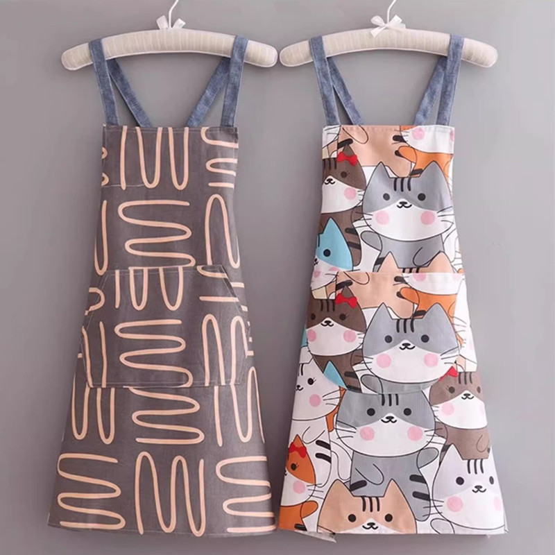 [Qianbaidu] ผ้ากันเปื้อนแฟชั่น กันน้ำ、น้ำมัน มีลวดลาย ปรับสายได้ ผู้หญิงทำอาหาร、เบเกอรี่、งานบ้าน