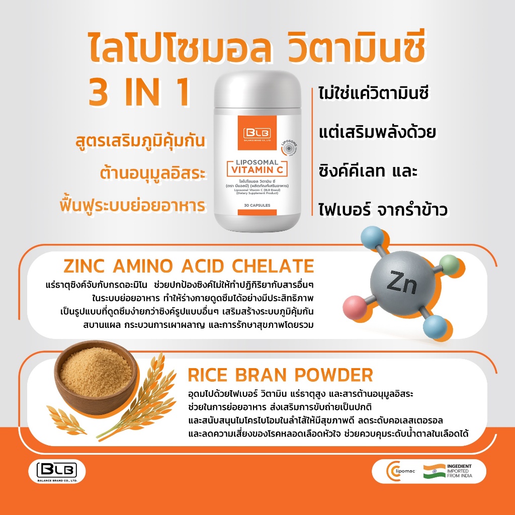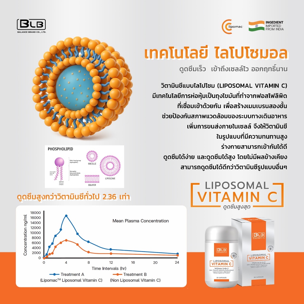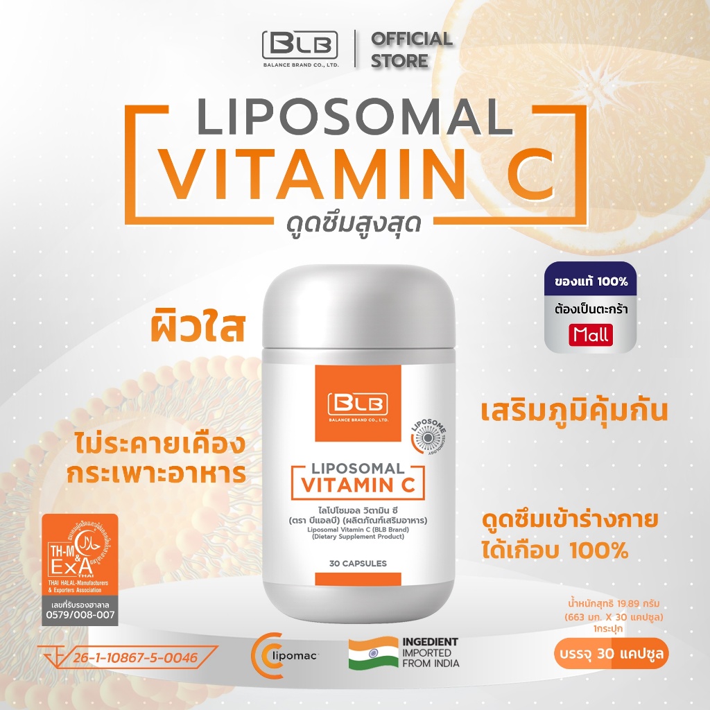 ไลโปโซมอล วิตามินซี Liposomal Vitamin C โปรโมชั่น 1-4กล่อง LIPOMAC® ผลิตภัณฑ์เสริมอาหาร ตราบีแอลบี (BLB)