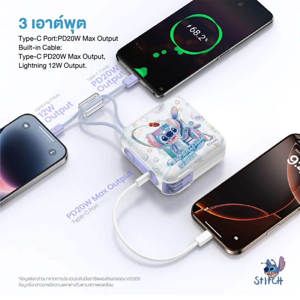 Stitch Powerbank พาวเวอร์แบงค์ลายDisney 10000 mAh และ 15000mAh PD20W ประกัน 2 ปี
