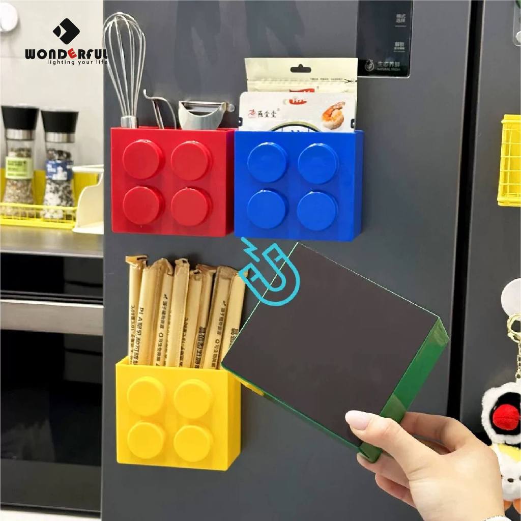 【🔥HOT】กล่องเก็บของแม่เหล็ก ติดตู้เย็น แบบเลโก้ ใส่อุปกรณ์ครัวเรือน ตกแต่งห้อง มีหลายสีให้เลือก