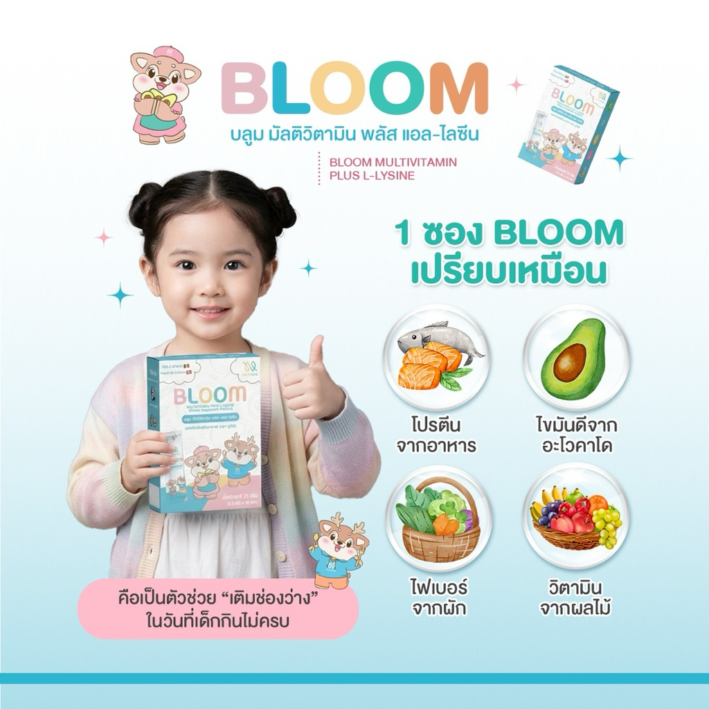 💡 วิตามินเด็กน้ำหนักไม่ขึ้น 🍽️ กินยาก ถ่ายยาก ลอง BLOOM Multivitamin Plus L-Lysine กล่องเดียวครบ! (25กรัม)10ซอง/กล่อง