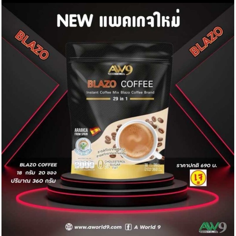 BLAZO COFFEE เบลโซ่คอฟฟี่ กาแฟเพื่อสุขภาพ 2 ห่อ 40ซอง (สูตรใหม่คุณประโยชน์เพิ่ม รสชาดเดิม)(ของแท้)