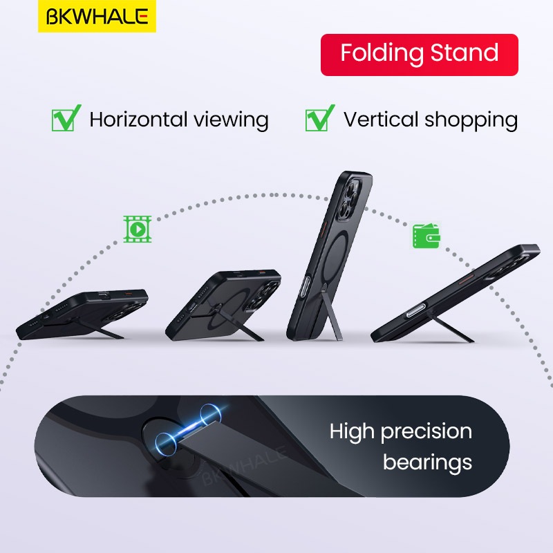 BKWHALE 360° วงเล็บหมุนได้เคสโทรศัพท์แม่เหล็กสําหรับiPhone 16 Pro Max 17e 16e 17 Pro Max 17Air 12 13 14 15 Pro Max 16 Plusโปร่งแสงปกหลังแม่เหล็กพับขาตั้งปลอก