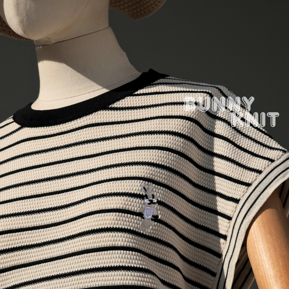 BUNNY KNIT เสื้อผ้าไหมพรมยืดริ้วปักกระต่าย