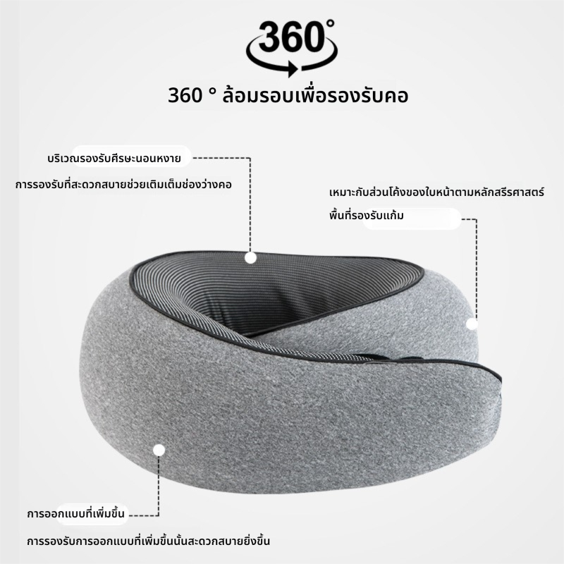 หมอนรองคอแบบพกพา หมอนรูปตัว U หมอนรองคอเมมโมรี่โฟมแบบเป่าลมตามหลักสรีรศาสตร์ นุ่มสบาย เหมาะสำหรับการเดินทาง
