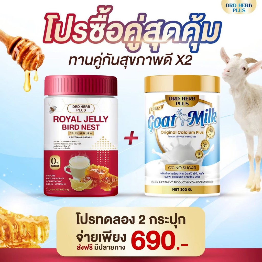 {3แถม1+1} นมแพะ Goat Milk+นมผึ้งรังนกแคลเซียม 1กป(200กรัม)+สบูา1 ก้อน หอมอร่อยกลมกล่อม ไม่มีน้ำตาล ครีมเทียม ส่งฟรี