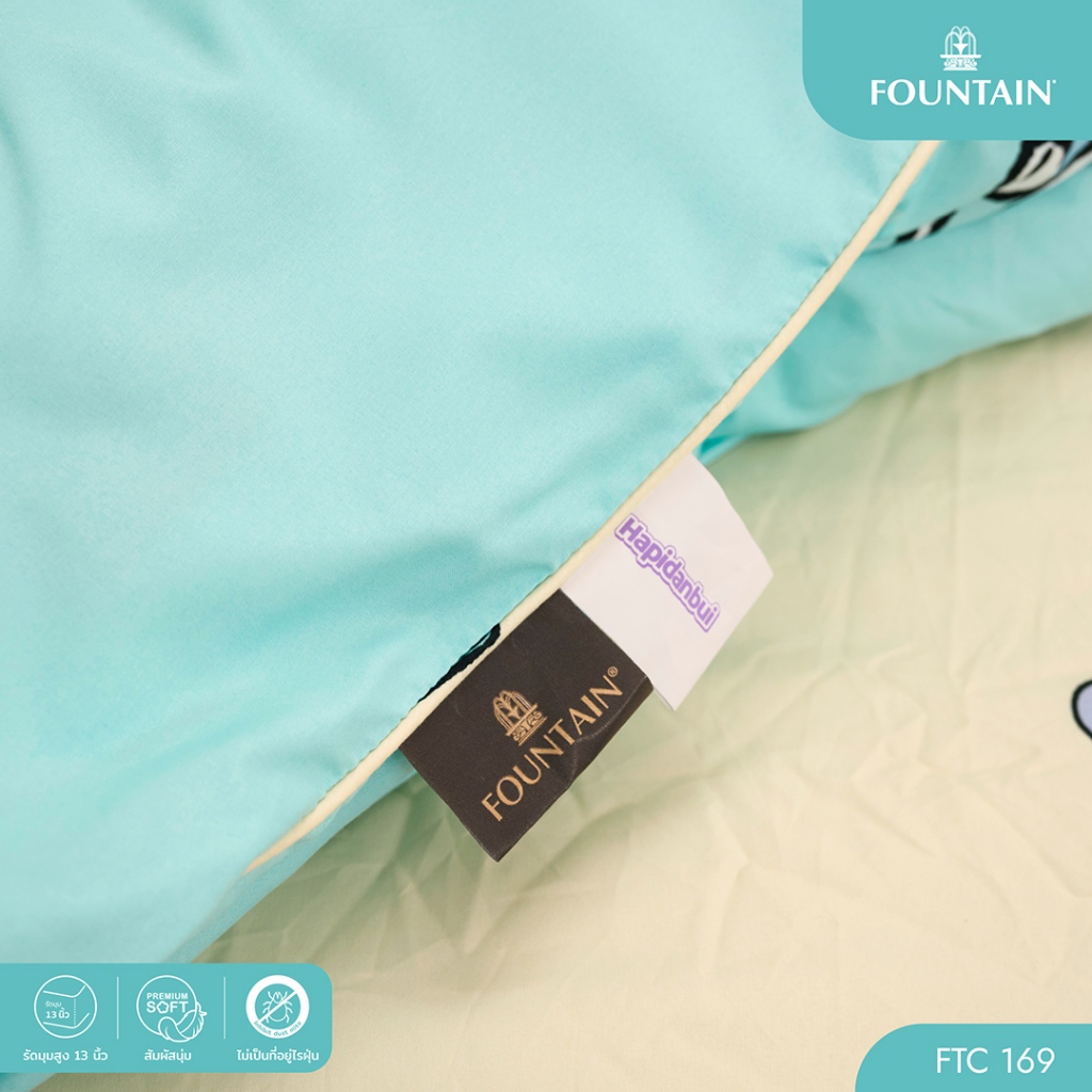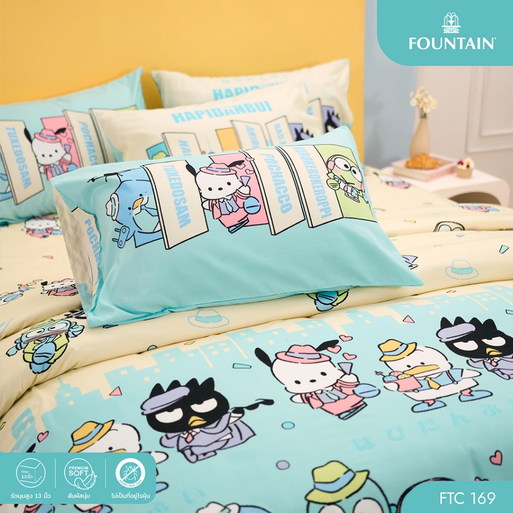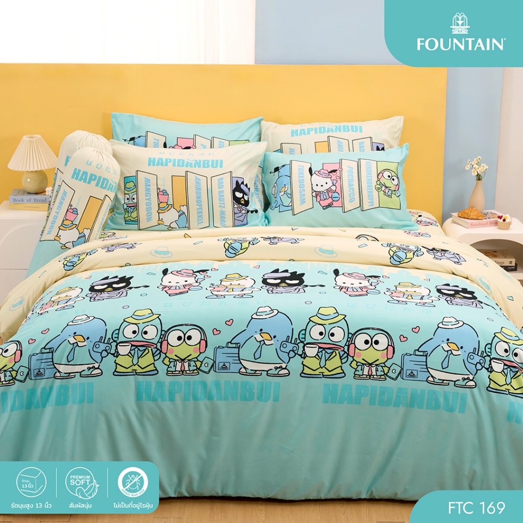 Fountain FTC169 การ์ตูน Hapidanbui ลิขสิทธิ์แท้ Sanrio สัมผัสนุ่มลื่น ชุดเครื่องนอนฟาวน์เทน ผ้าปูที่นอน ผ้านวม