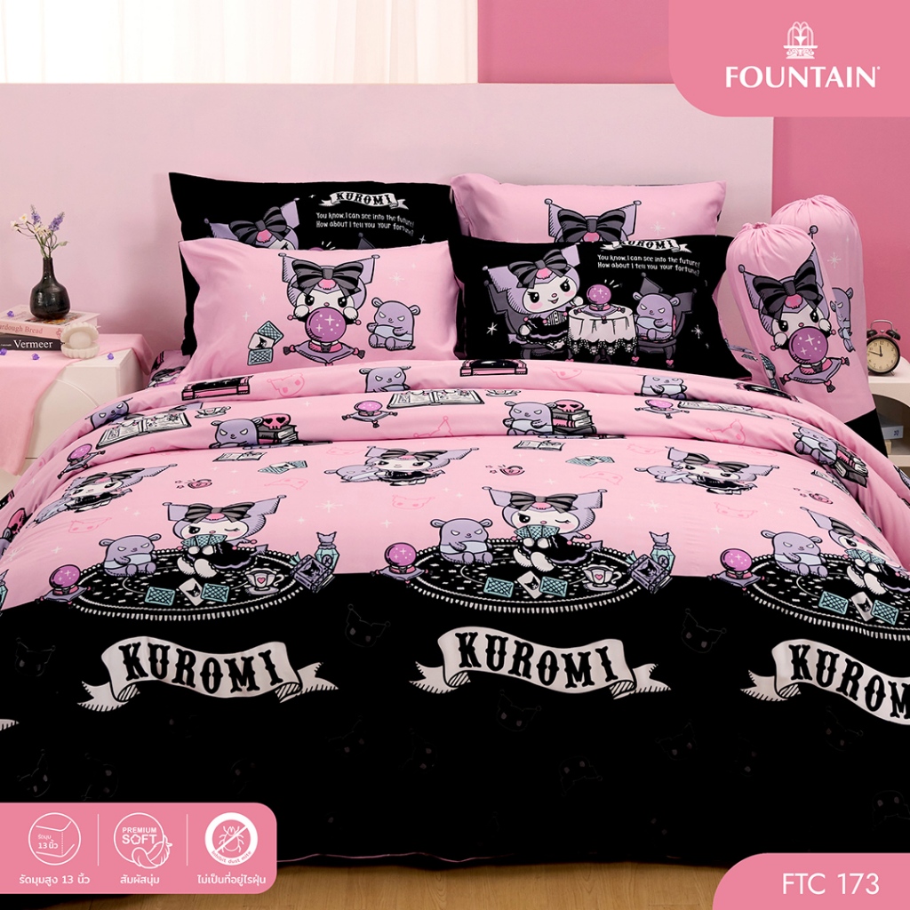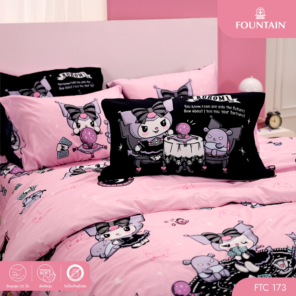 Fountain FTC173 Kuromi คุโรมิ ลิขสิทธิ์แท้ Sanrio สัมผัสนุ่มลื่น ชุดเครื่องนอนฟาวน์เทน ผ้าปูที่นอน ผ้านวม การ์ตูน