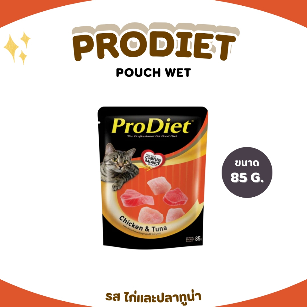 Prodiet โปรไดเอท อาหารเปียกแมว ขนาด 85g สูตรมาตรฐาน ( 12 ซอง ) อาหารเปียก อาหารแมว