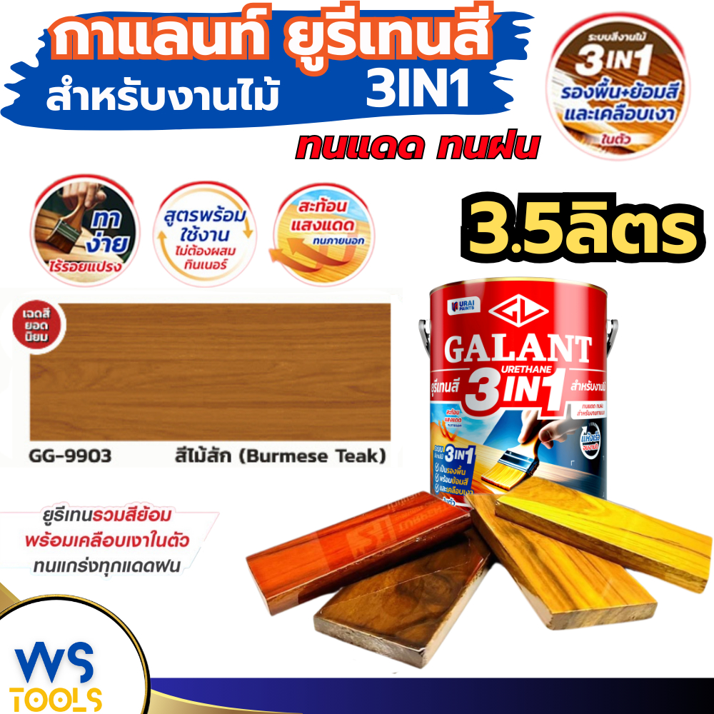 กาแลนท์ ยูรีเทนสี 3in1 GALANT งานย้อมสีไม้ ทาไม้กลางแจ้ง 3.5ลิตร ไม้สัก ไม้ประดู่ ไม้มะฮอกกานี รองพื้น เคลือบเงาไม้
