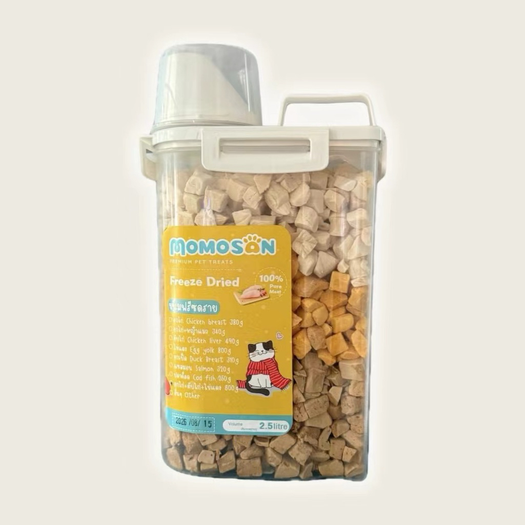 ขนมฟรีซดรายแมว Momosan ขนมแมว 2500ml เนื้อสัตว์ 100% ขนมสุนัข ขนมหมา อกไก่ แซลมอน ไข่แดง หญ้าแมว อาหารแมว อาหารหมา