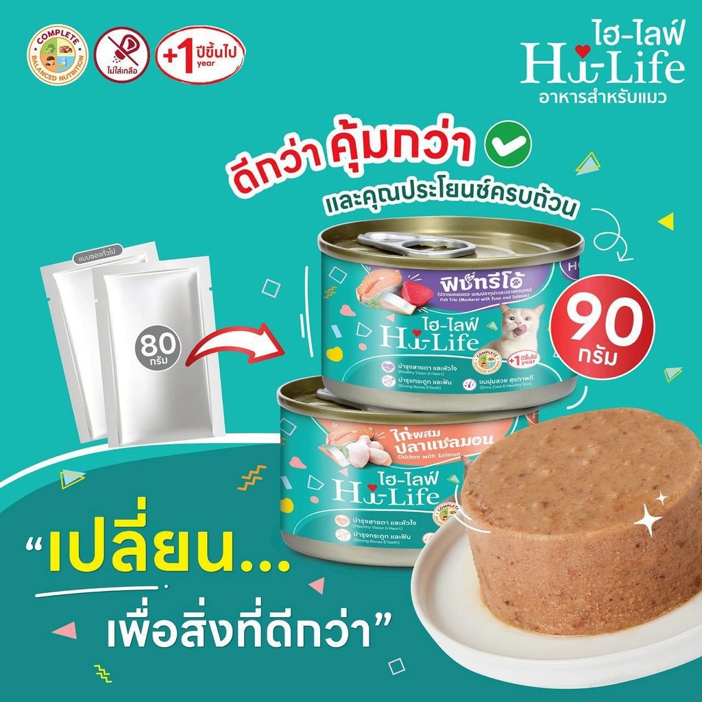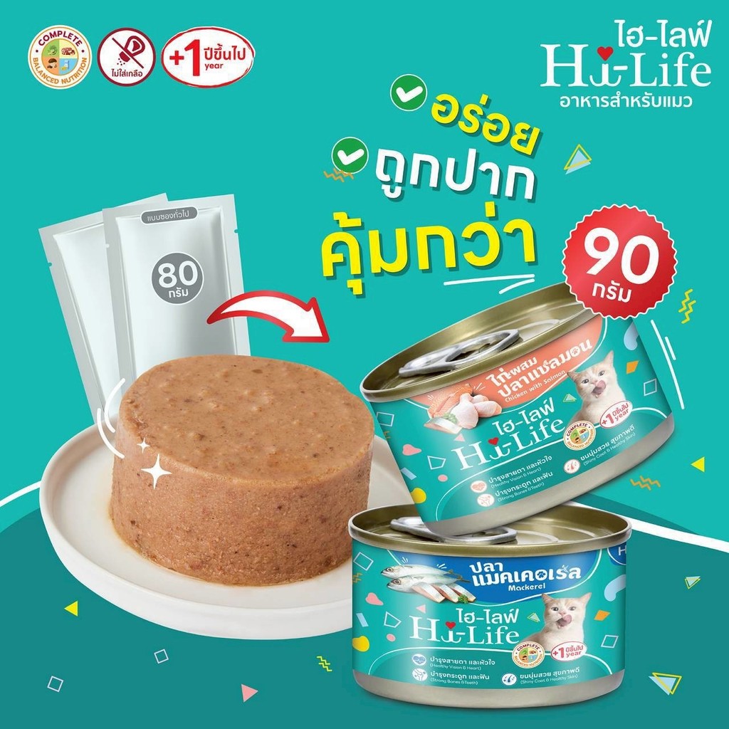 Hi-Life ไฮไลฟ์ อาหารเปียกแมวกระป๋อง ราคาประหยัด สำหรับแมวโต สูตร Complete & Balanced ขนาด 90 กรัม